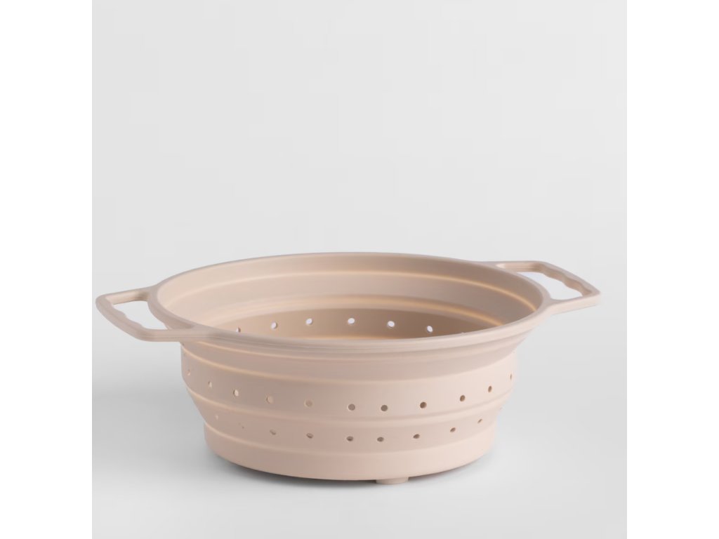 Cedník Dorello je nenahraditeľný nástroj v každej kuchyni, a tento, vyrobený z odolného silikónu v elegantnej béžovej farbe, vám zaručí nielen pohodlie, ale aj štýlový akcent vo vašom kuchynskom priestore. Vyrobený z vysokokvalitného silikónu, cedník je pružný, trvácny a ľahko sa udržiava v čistote. Jeho flexibilná konštrukcia umožňuje ľahké vsunutie do drezu alebo umývadla, čo uľahčuje cedenie rôznych druhov produktov, od cestovín po zeleninu. Béžová farba dodáva cedníku decentný a moderný vzhľad, ktorý sa dokonale hodí k rôznym kuchynským štýlom. Vďaka pevnej konštrukcii a praktickému dizajnu je cedník nielen funkčným kuchynským nástrojom, ale aj estetickým doplnkom do vašej kolekcie kuchynských doplnkov. Bez ohľadu na to, či ho používate na cedenie cestovín alebo ovocia, silikónový cedník v béžovej farbe bude nenahraditeľným prvkom vašej kuchyne.