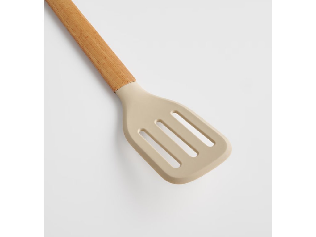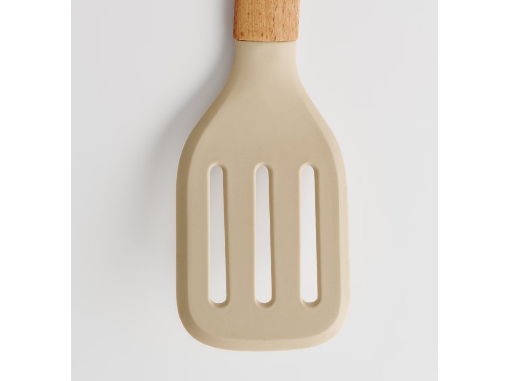 Hlavná časť špachtle Cucinas je vyrobená z vysokokvalitného silikónu, ktorý je odolný voči vysokým teplotám a nepoškriabe povrch riadu. Rukoväť z bukového dreva zaisťuje pevný úchop a dodáva eleganciu. Silikón je materiál bezpečný pri kontakte s potravinami a bukové drevo dodáva špachtli prirodzený a teplý charakter.