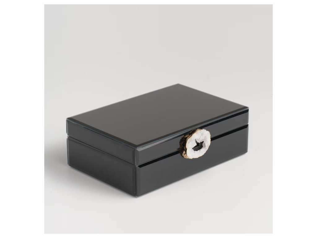 Elegantná šperkovnica vyrobená zo skla v čiernej farbe je štýlový doplnok na uskladnenie cenných ozdôb. Jej minimalistický dizajn a hlboká, čierna farba vnášajú do interiéru moderný akcent. Je ideálna na vystavenie a organizovanie šperkov, dodáva priestoru luxusný a elegantný charakter.