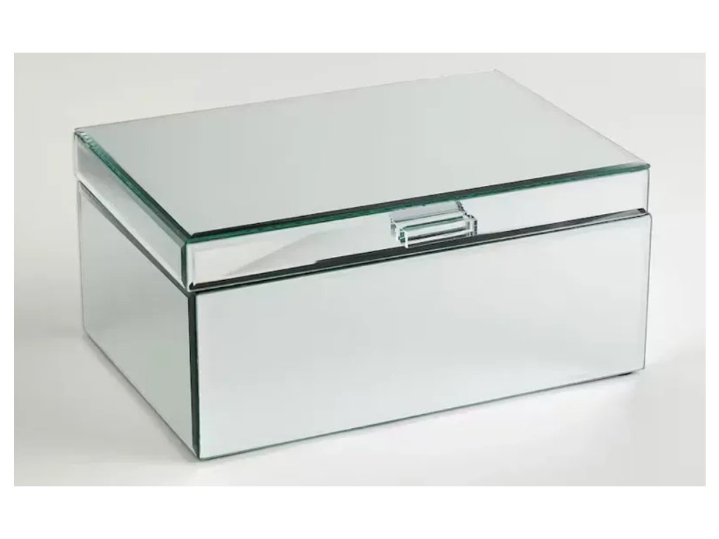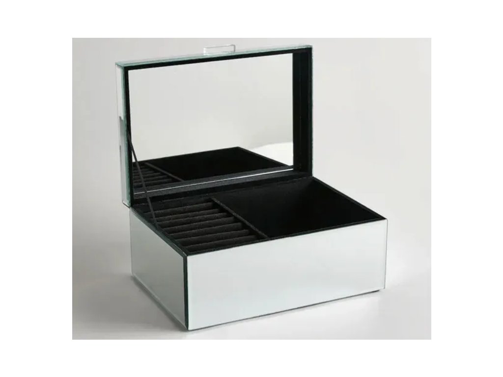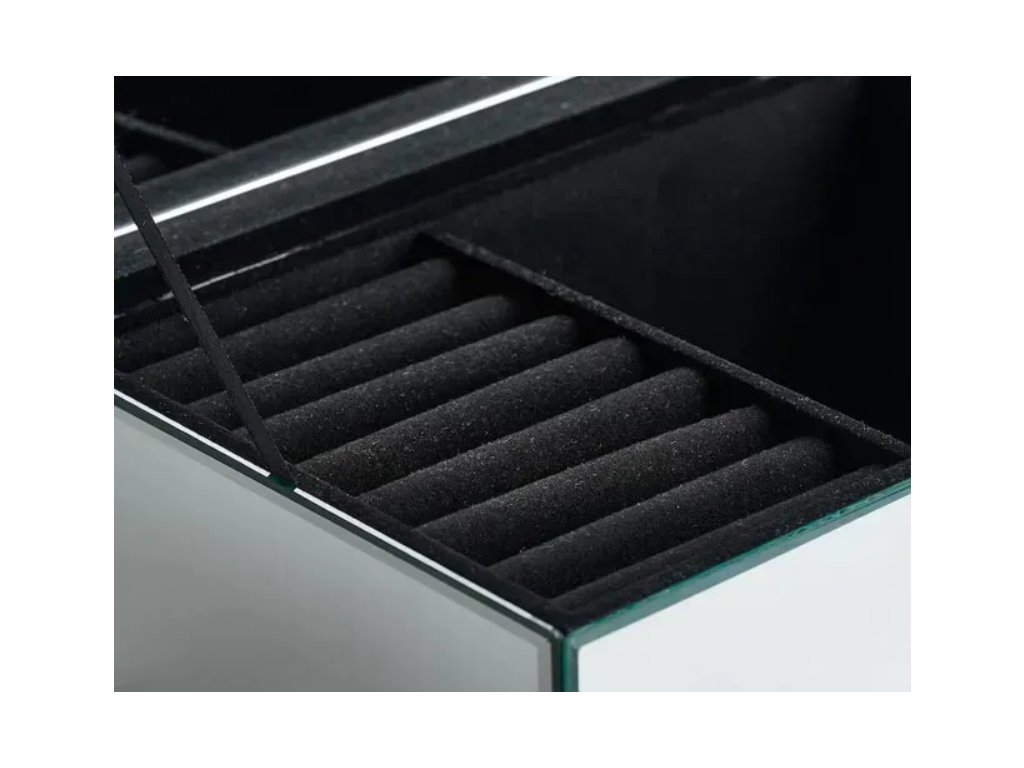 Táto elegantná strieborná sklenená šperkovnica bude luxusným doplnkom každého interiéru. Moderný dizajn sa spája s elegantným strieborným povrchom, ktorý jej dodáva jemný lesk. Je ideálna na uchovávanie šperkov, pričom kombinuje funkčnosť a estetiku a vnáša nádych luxusu a štýlu.