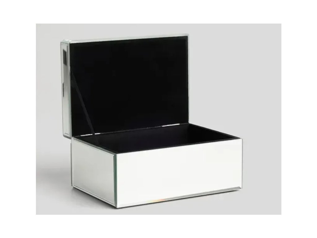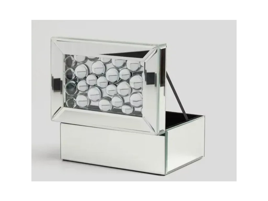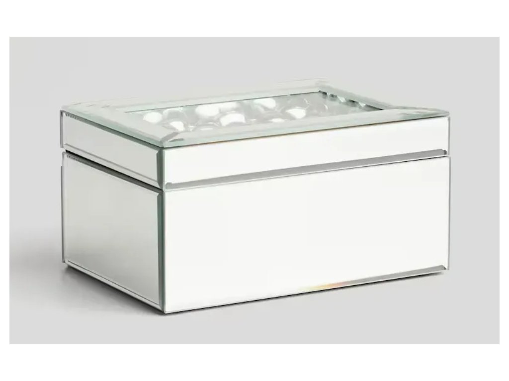 Táto elegantná šperkovnica na šperky je vyrobená zo skla, MDF a polyesteru a má štýlovú striebornú úpravu. Je ideálna na uloženie prsteňov, náušníc a iných drobností.