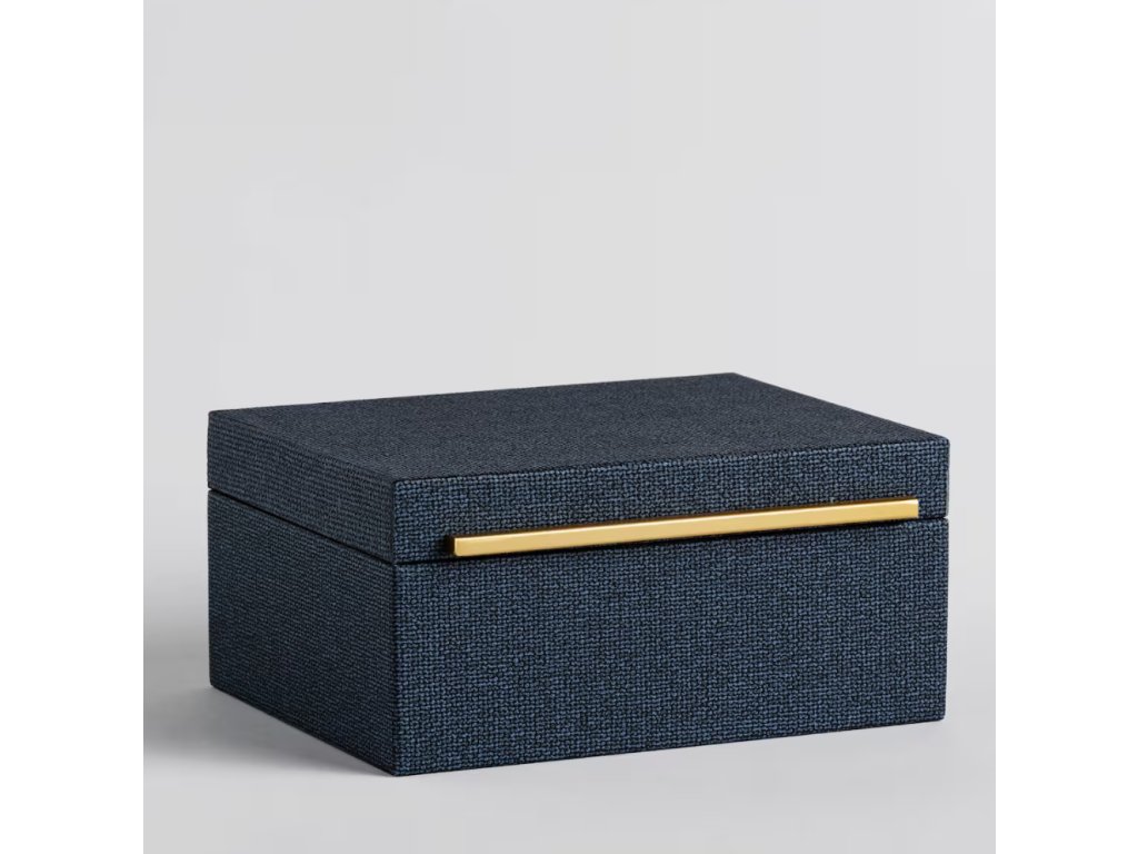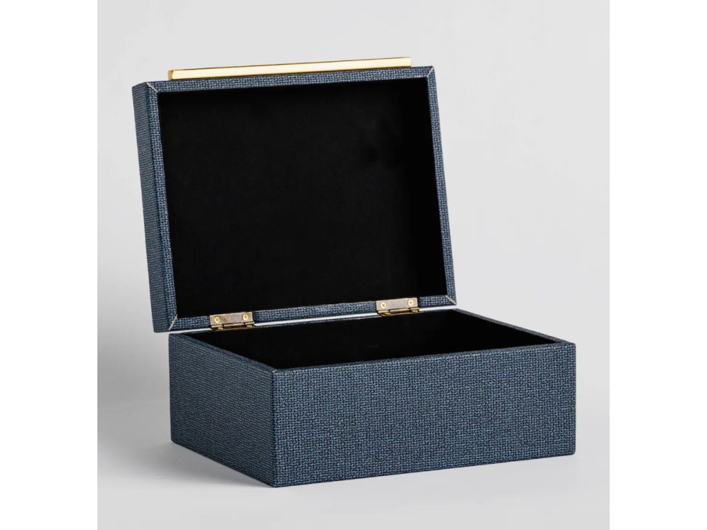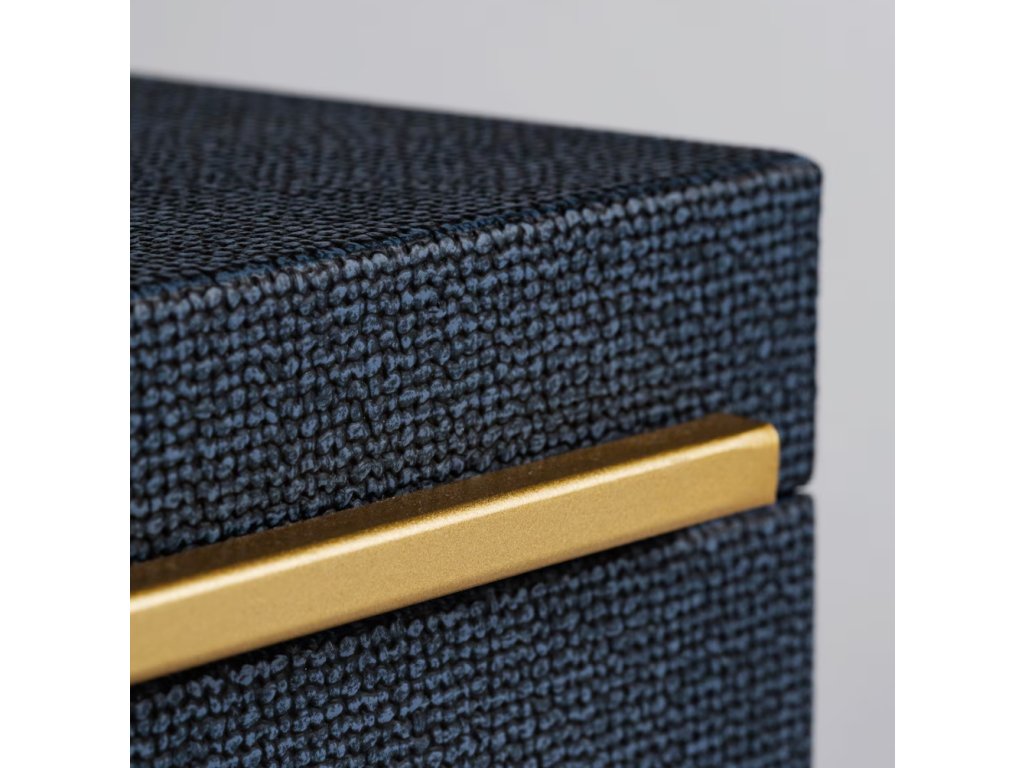 Šperkovnica Mirages v tmavomodrej farbe je elegantný spôsob na uskladnenie vašich obľúbených doplnkov. Jej výnimočná farba dodáva interiéru subtilnosť a triedu, ideálne sa hodiaca k rôznym aranžmánom. Je vyrobená z odolného MDF materiálu, táto šperkovnica je nielen štýlovým doplnkom, ale aj praktickým spôsobom na organizáciu bižutérie. Jej pevná konštrukcia zaručuje bezpečné uskladnenie vašich cenných predmetov, chrániac ich pred poškriabaním a poškodením. Vnútro šperkovnice je starostlivo vyhotovené, aby zabezpečilo jemné zaobchádzanie s vašou bižutériou a poskytlo im jedinečné miesto na uskladnenie. Vďaka tomu budete môcť ľahko nájsť vhodnú bižutériu na každú príležitosť, bez nutnosti prehľadávať celú kolekciu. Tmavomodrá farba dodáva šperkovnici eleganciu a výnimočný pôvab, čím sa stane nielen praktickým, ale aj dekoratívnym prvkom vášho priestoru.