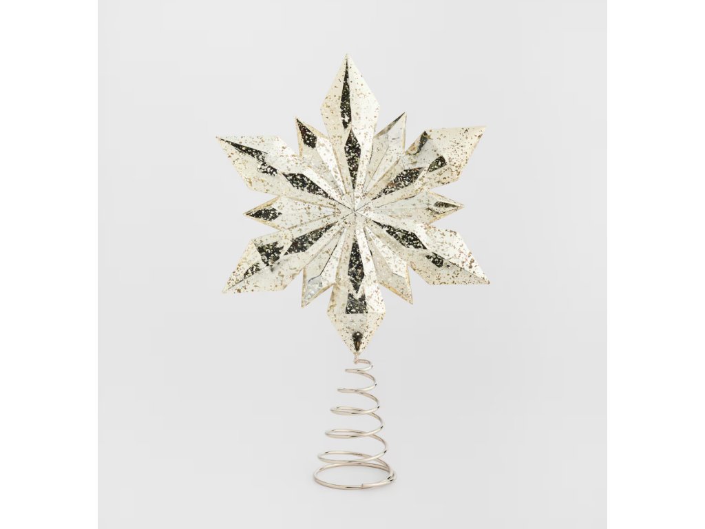 Korunujte svoj vianočný stromček výnimočnou špičkou Dale, ktorá vnesie do vášho interiéru pravý glamour štýl. Táto pôsobivá dekorácia je vytvorená z lesklého plastu v tvare snehovej vločky so zrkadlovým efektom, pričom zlaté sfarbenie s jemnými prasklinami dodáva celému dielu luxusný a vintage nádych. Špička je pevne uchytená na kovovej pružine, čo zaisťuje jednoduchú a stabilnú inštaláciu. Vďaka svojej výške 31,5 cm a oslnivému zlatému motívu snehovej vločky bude dominovať vášmu stromčeku a nádherne odrážať svetlá.