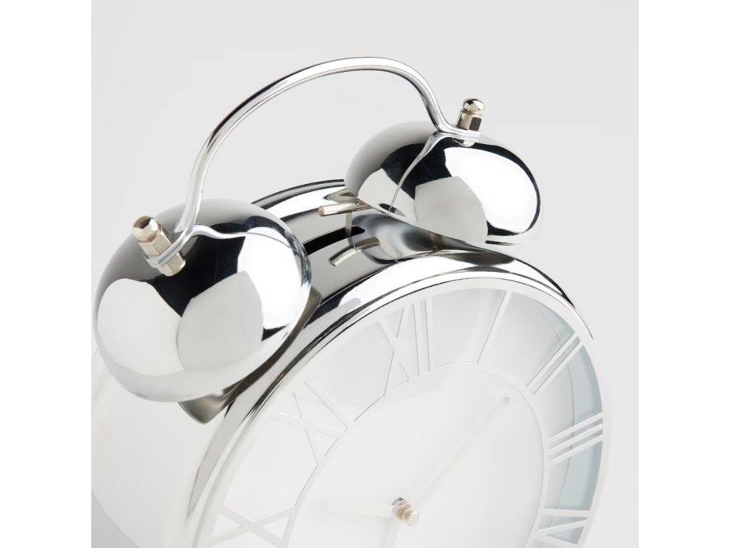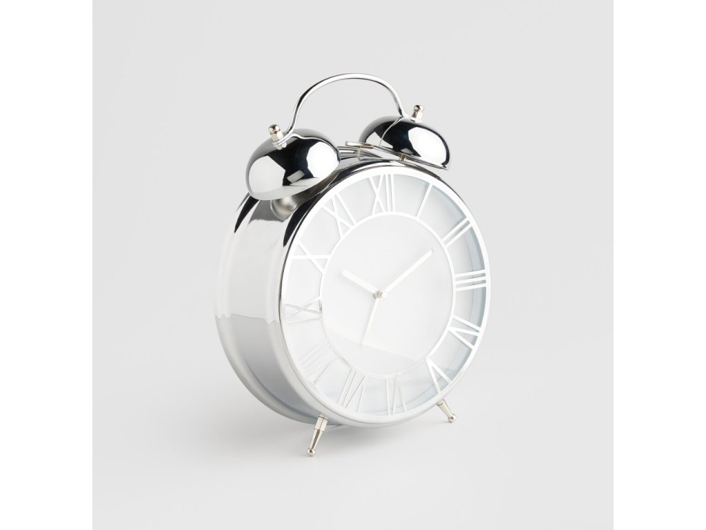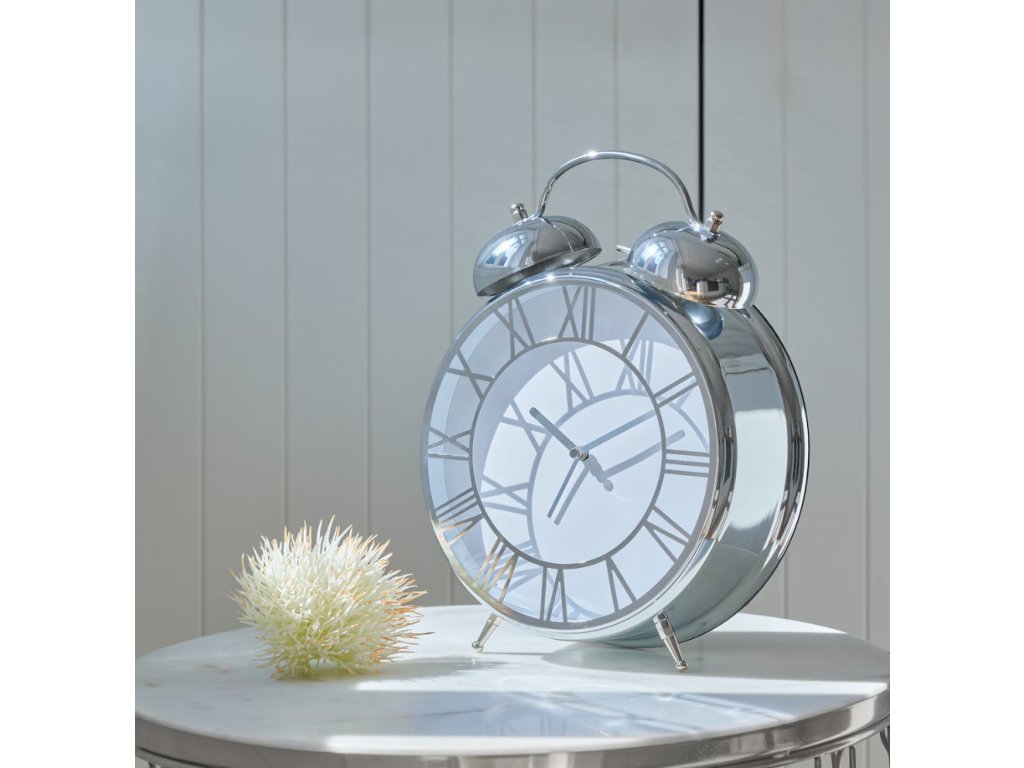 Tieto stojace hodiny v striebornej farbe majú konštrukciu určenú na stojace umiestnenie. Hodiny sú vyrobené z kovu, ktorý je hlavným materiálom, a doplnené sú o sklo a plast. Povrchová úprava je galvanizovaná, čo dodáva hodinám elegantný štýl.