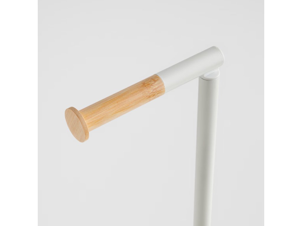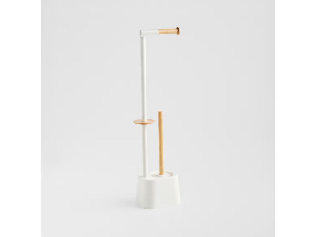 Tento elegantný biely stojan s WC kefou Neroli predstavuje moderné a funkčné riešenie do každej kúpeľne. Jeho minimalistický dizajn je spojený s prvkami prírodného bambusu, ktoré dodávajú teplý a škandinávsky akcent. Stojan je vyrobený zo železa a plastu a kombinuje držiak na toaletný papier a priestor na odloženie WC kefy s bambusovou rukoväťou, čím zabezpečuje poriadok a hygienu. Pevná a stabilná konštrukcia v matnom bielom vyhotovení sa hodí najmä do moderných, svetlých interiérov.
