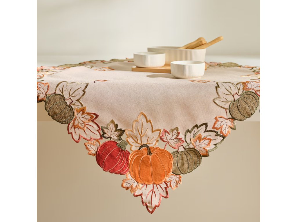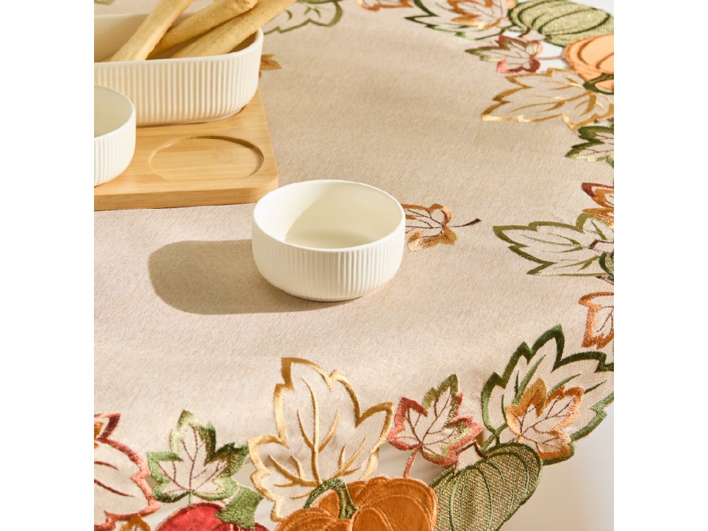 Béžová vyšívaná štóla je elegantný dekoračný prvok, ktorý vnesie do interiéru teplý, sezónny akcent. Je vyrobená z kombinácie polyesteru a viskózy, čím spája odolnosť s decentným leskom a štruktúrou príjemnou na dotyk. Zdobená prepracovanou výšivkou s motívom tekvice sa dokonale hodí k jesennej atmosfére a podčiarkne charakter úpravy stola. Hodí sa ako centrálna ozdoba stolovej dosky, ale aj ako efektný doplnok k väčšiemu obrusu. Je ideálna na každodenné použitie aj na špeciálne príležitosti.