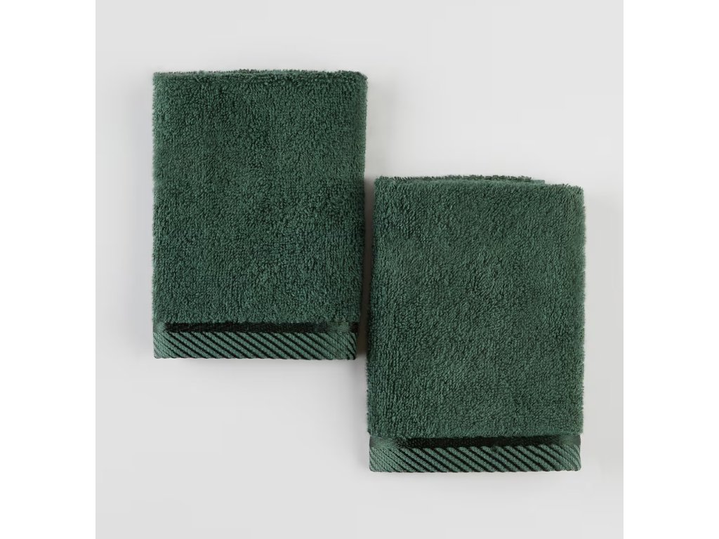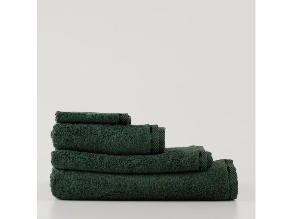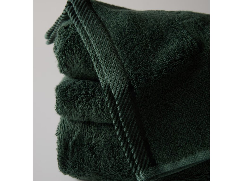 Elegantná súprava dvoch uterákov z bavlny v hlbokej tmavozelenej farbe spája štýl, komfort a funkčnosť, čím predstavuje vynikajúcu voľbu pre každého, kto si cení luxus a pohodlie. Intenzívny odtieň dodáva eleganciu a štipku sviežosti každému interiéru a ich klasický rozmer ich robí všestranne použiteľnými. Sú vyrobené z bavlny s gramážou 500 g/m², sú výnimočne mäkké, savé a príjemné na dotyk, zabezpečujúc dokonalú absorpciu vlhkosti a komfort používania. Ich pevné vyhotovenie zaručuje trvácnosť a dlhodobé používanie a elegantná tmavozelená farba im prepožičiava moderný a štýlový vzhľad.