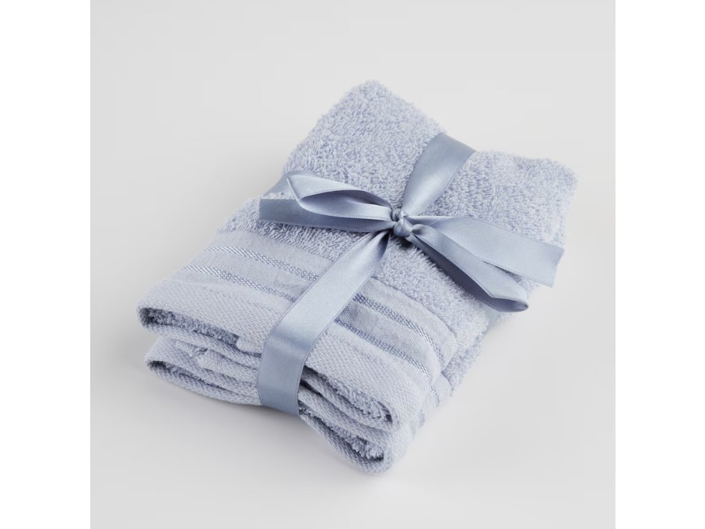 Súprava dvoch uterákov z bavlny s prídavkom viskózy v svetlomodrej farbe je spojením vysokej savosti a elegancie. Uteráky zaisťujú komfort a jemnosť pri používaní. Odtieň im dodáva hlboký, klasický vzhľad, ideálne sa hodiaci do moderných a tradičných kúpeľní. Vďaka optimálnej gramáži sú výnimočne savé a trvácne a ich rozmer ich robí pohodlnými na každodenné používanie.