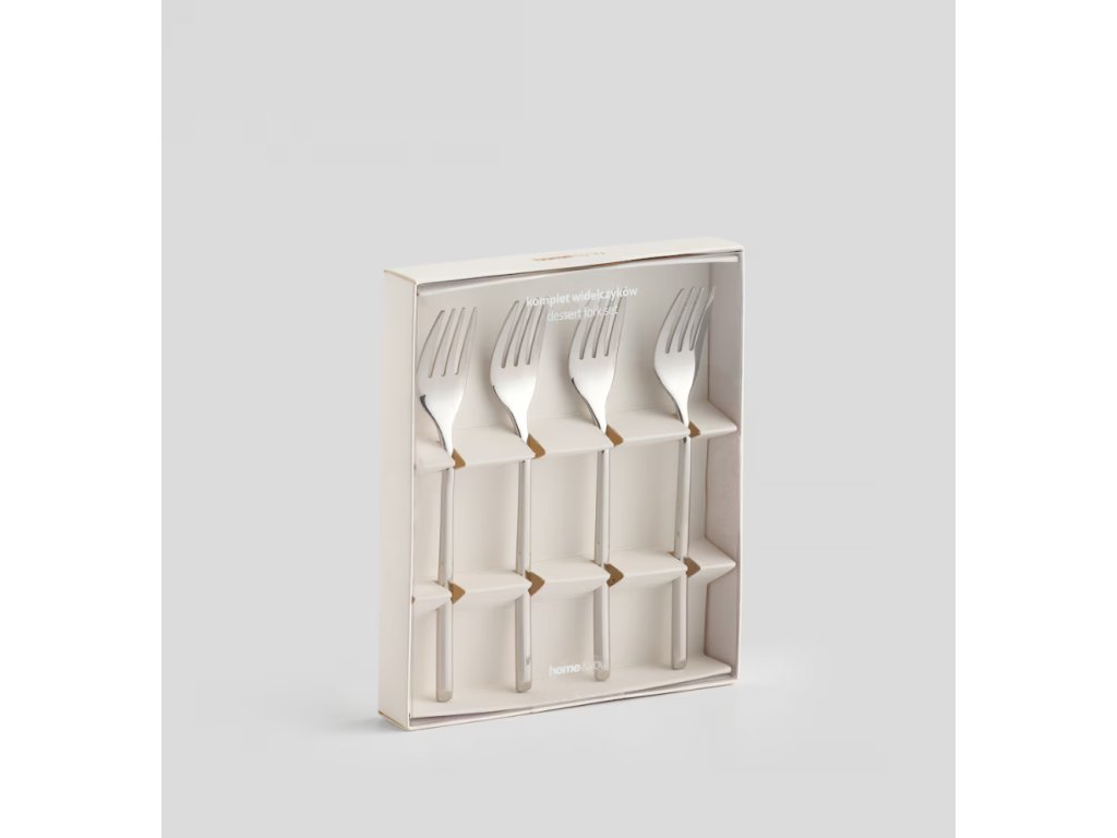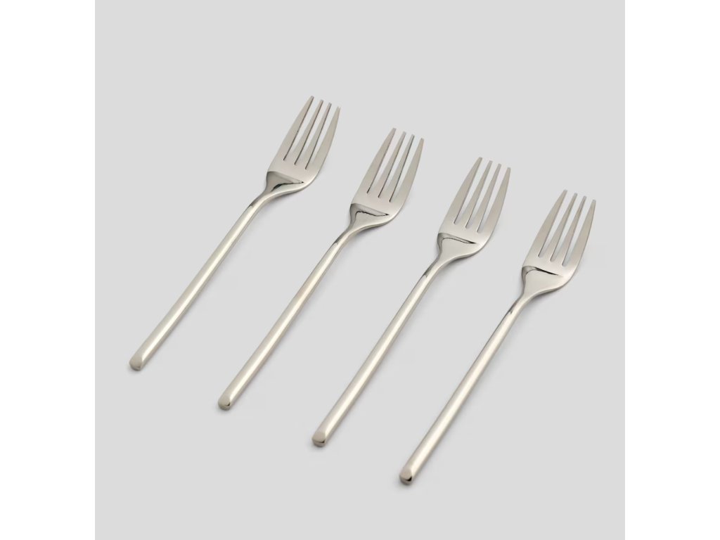 Súprava štyroch vidličiek v striebornej farbe, vyrobených z trvácnej nehrdzavejúcej ocele. Každá vidlička má dĺžku 15 cm, čo ju robí ideálnou na dezerty, ovocie a zákusky. Klasický a elegantný dizajn sa hodí ku každému stolovaniu.