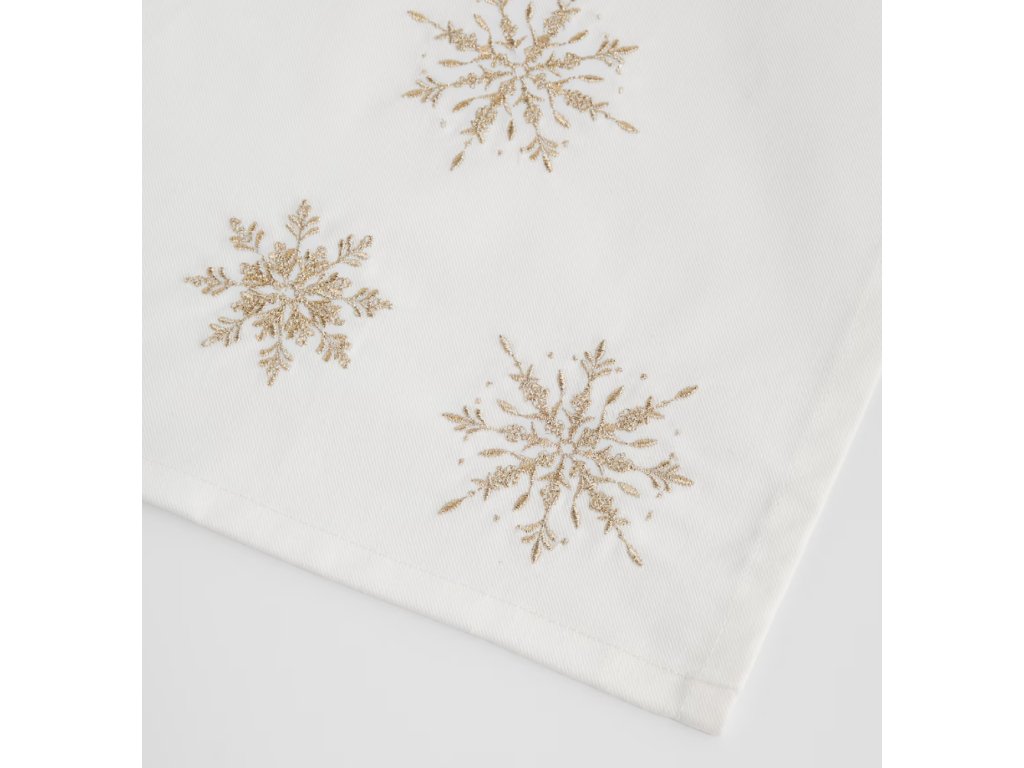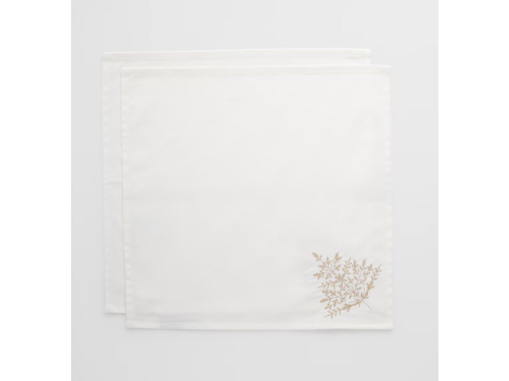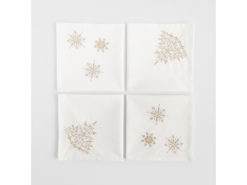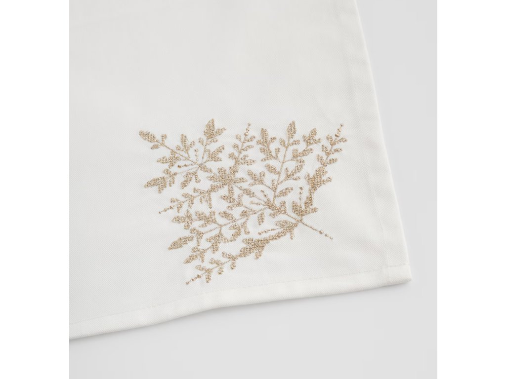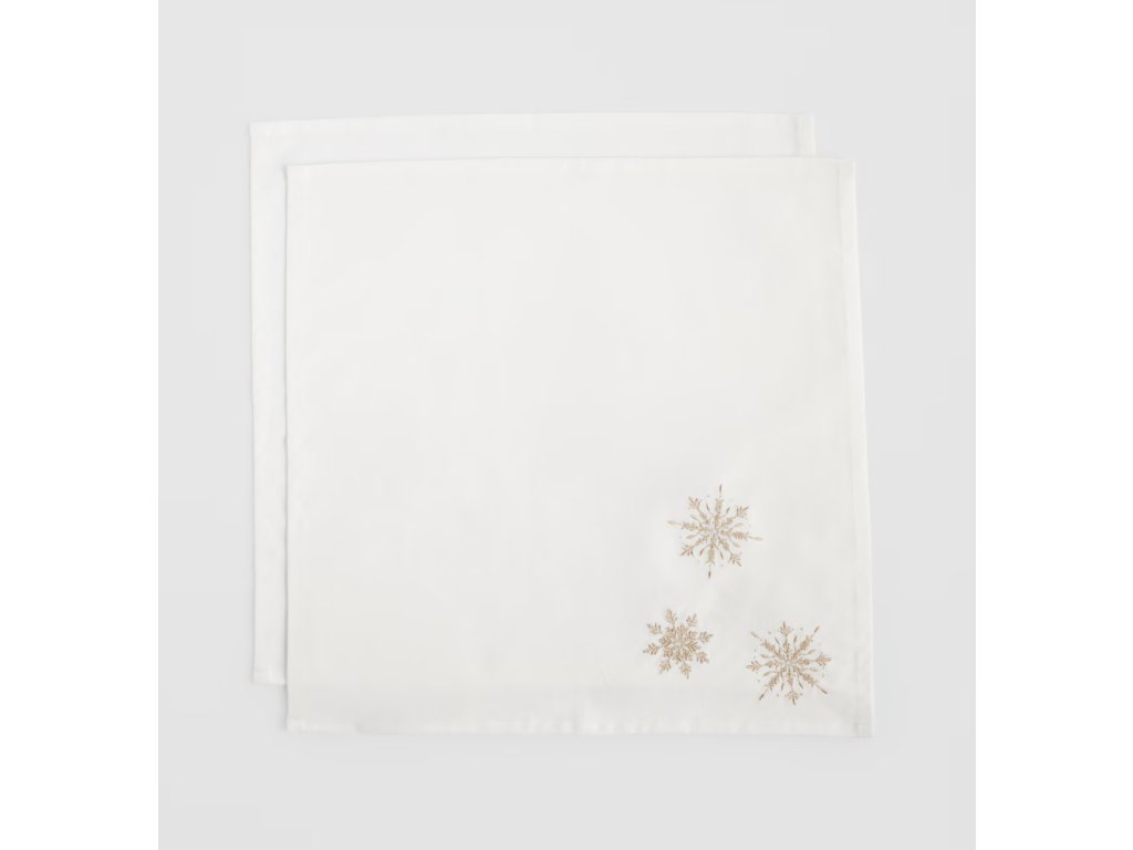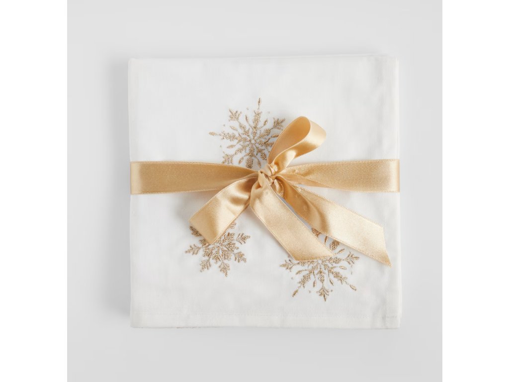 Klasická, biela farba obrúskov je obohatená o jemnú zlatú výšivku v tvare snehových vločiek a rastlinných motívov. Vznešená farebnosť vnáša subtílny lesk a spôsobuje, že sa obrúsky dokonale prezentujú tak počas sviatočných, ako aj každodenných stretnutí pri stole. Súprava obrúskov ideálne podčiarkne elegantný charakter aranžmánov v klasickom, minimalistickom alebo glam štýle. Je to tiež výnimočný nápad na praktický darček pre blízkych.
