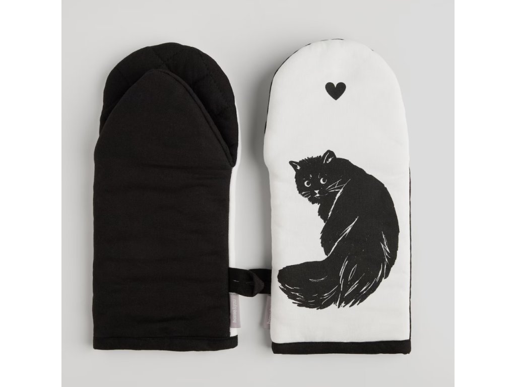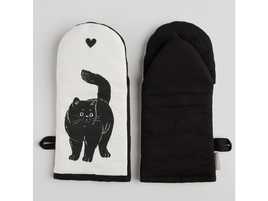 Súprava kuchynských rukavíc z bavlny s roztomilým motívom mačky je praktickým a zábavným doplnkom do každej kuchyne. Sú vyrobené z vysokokvalitného materiálu, poskytujú ochranu pred horúcimi povrchmi a ich mačací dizajn dodáva pri varení charakter a radosť.