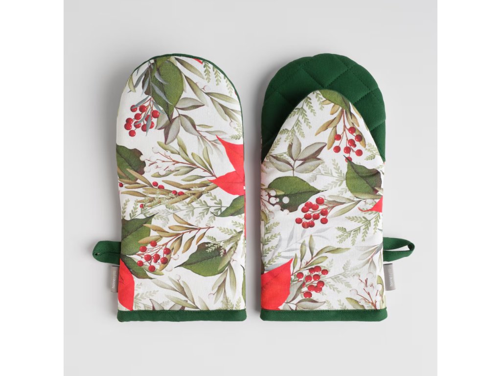 Vneste sviatočnú atmosféru do svojej kuchyne so súpravou kuchynských rukavíc Poinsetta s rozmermi 14x30 cm. Tento praktický komplet spája vysokú kvalitu, certifikovanú ochranu a výnimočný dizajn, aby bolo varenie bezpečné a mimoriadne štýlové.