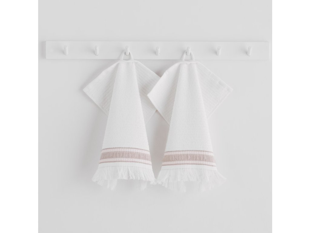 Súprava dvoch kuchynských utierok z bavlny je elegantným a praktickým riešením do kúpeľne alebo kuchyne. S rozmermi 30 cm x 30 cm sú ideálne na každodenné použitie, napríklad na osušenie rúk alebo utretie drobných predmetov. Utierky sú vyrobené z vysokokvalitnej zmesi bavlny a polyesteru, čo im dodáva trvácnosť a mäkkosť. Gramáž 450 g/m² zaručuje, že účinne absorbujú vodu a rýchlo schnú, čo je pri každodennom používaní kľúčové. Hnedý lem dodáva utierkam elegantný vzhľad a charakter. Je to decentný akcent, vďaka ktorému utierky pôsobia ešte štýlovejšie a exkluzívnejšie. Súprava dvoch kusov navyše zaručuje, že budete mať vždy po ruke náhradnú utierku, čo je praktické doma aj na cestách. Vďaka jednoduchej údržbe sú navyše praktickým a funkčným prvkom vybavenia každej kúpeľne alebo kuchyne.