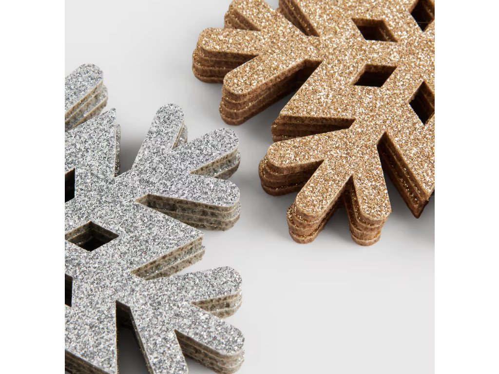 Súprava štyroch podložiek v tvare snehových vločiek, v striebornej farbe, bude ideálnym doplnkom k sviatočnému aranžmánu. Lesklé vyhotovenie im dodáva eleganciu a lesk. Stelito sa dokonale hodí do interiérov v klasickom, modernom a glamour štýle. Je to tiež vynikajúci nápad na darček pre blízku osobu.