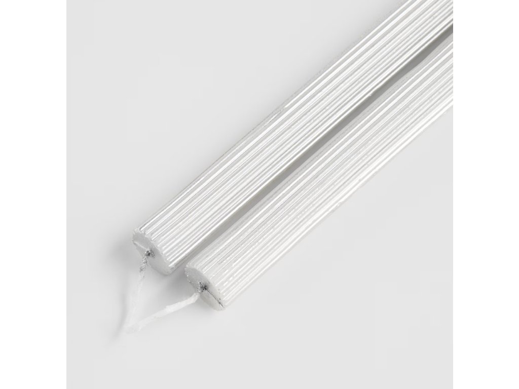 Oživte svoju sviatočnú výzdobu s luxusnou súpravou sviečok Elegi! Tieto vysoké, úzke sviečky v modernom štýle a elegantnej striebornej farbe sú ideálne na vytvorenie slávnostnej atmosféry . Sú vyrobené z kvalitného vosku s efektným pozláteným a rebrovaným povrchom, ktorý vnesie do interiéru štipku glamour štýlu. Sviečky horia stabilným plameňom až 7 hodín, čím zaistia dlhé hodiny príjemného, teplého svetla počas štedrej večere alebo zimných večerov. Sú perfektné do vysokých svietnikov na jedálenskom stole alebo do adventného venca .