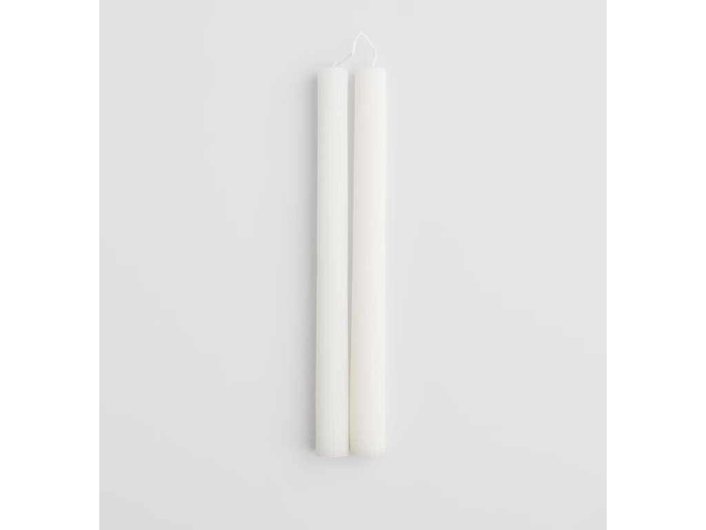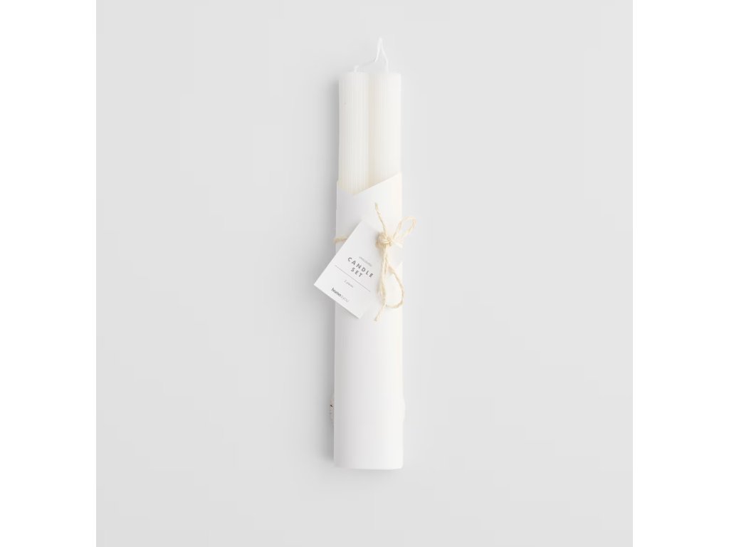 Elegancia, ktorá rozžiari každú príležitosť. 🕯️ Súprava dvoch bielych sviečok Taperro 30 cm) s klasickým, ryhovaným dizajnom. Ich čistá biela farba a elegantné balenie s jutovým špagátom sú dokonalým doplnkom na sviatočný stôl, romantickú večeru alebo ako štýlový darček.