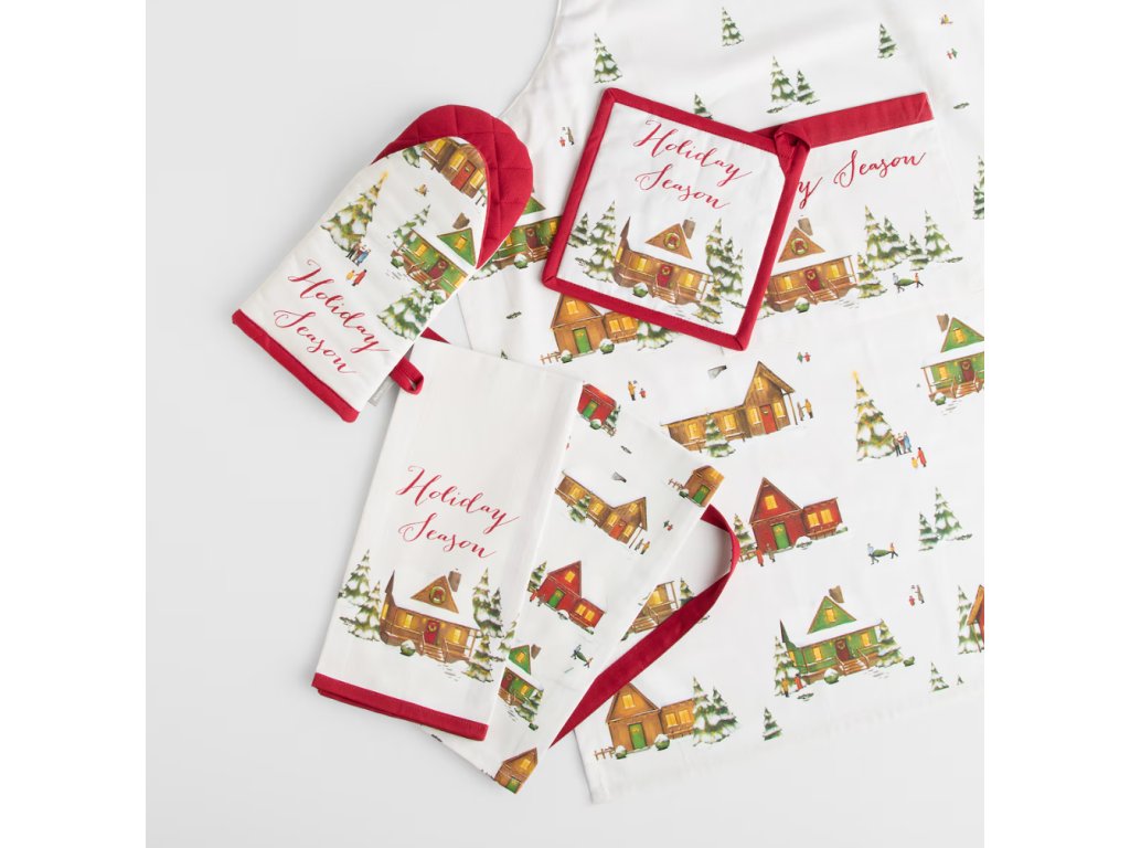 Univerzálna béžová farba s akcentmi farebných potlačí a sviatočný motív domčekov, vianočných stromčekov a nápisu „Holiday Season“ spôsobuje, že súprava utierok winhurst sa stane dekoratívnym prvkom kuchyne počas zimného obdobia. Tento výnimočný dizajn sa hodí ku klasickým, ako aj moderným interiérom a dokonale sa osvedčí ako praktický darček pre blízku osobu.