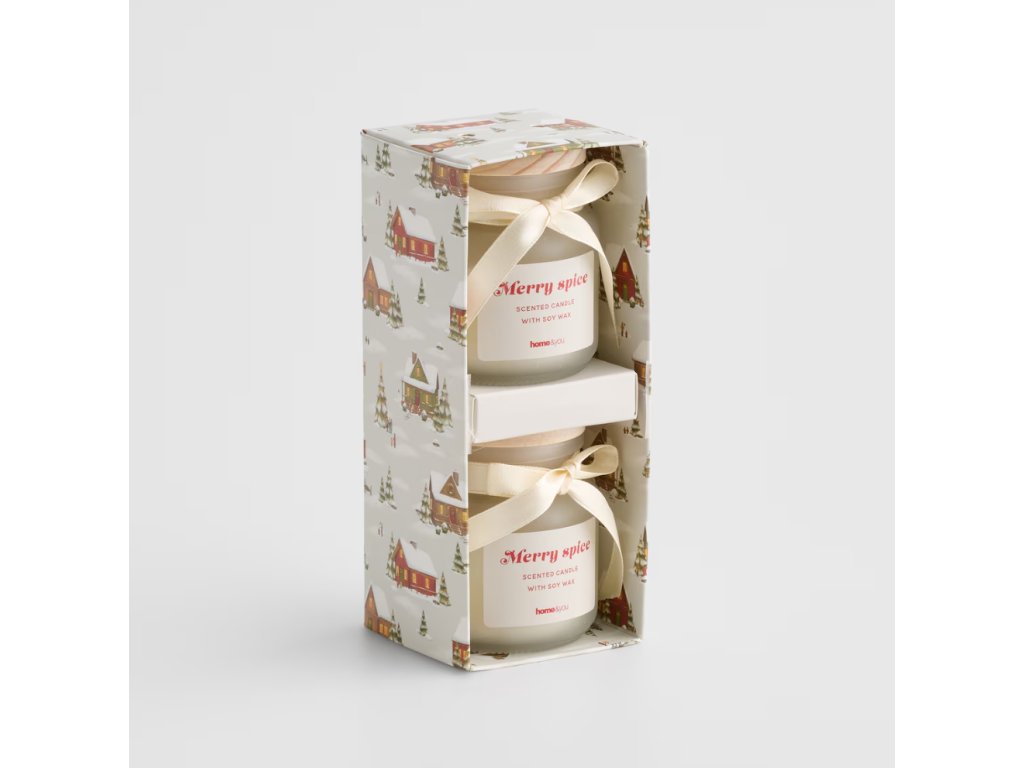 Rozšírte čaro Vianoc vo vašom domove s touto darčekovou Súpravou vonných sviečok Winhurst. Dve sviečky s hrejivou sviatočnou vôňou "Merry Spice" sú uložené v elegantných sklenených nádobách s dreveným viečkom, previazaných krémovou stuhou. Súprava je balená v krabici s krásnym zimným motívom zasnežených domčekov, vďaka čomu je ideálnym, vkusným darčekom, ktorý poteší zmysly a dodá interiéru útulnú atmosféru.