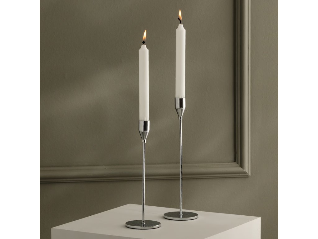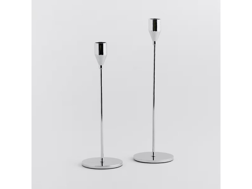 Tento strieborný svietnik vyrobený z kovu je elegantný a štýlový dekoratívny prvok, ktorý sa skvele hodí do rôznych interiérov. Strieborná farba mu dodáva moderný vzhľad a jednoduchá forma zaisťuje, že sa hodí do moderných aj tradičných aranžmánov. Svietnik na dlhú sviečku poskytuje decentné osvetlenie a vytvára útulnú atmosféru v každej miestnosti.
