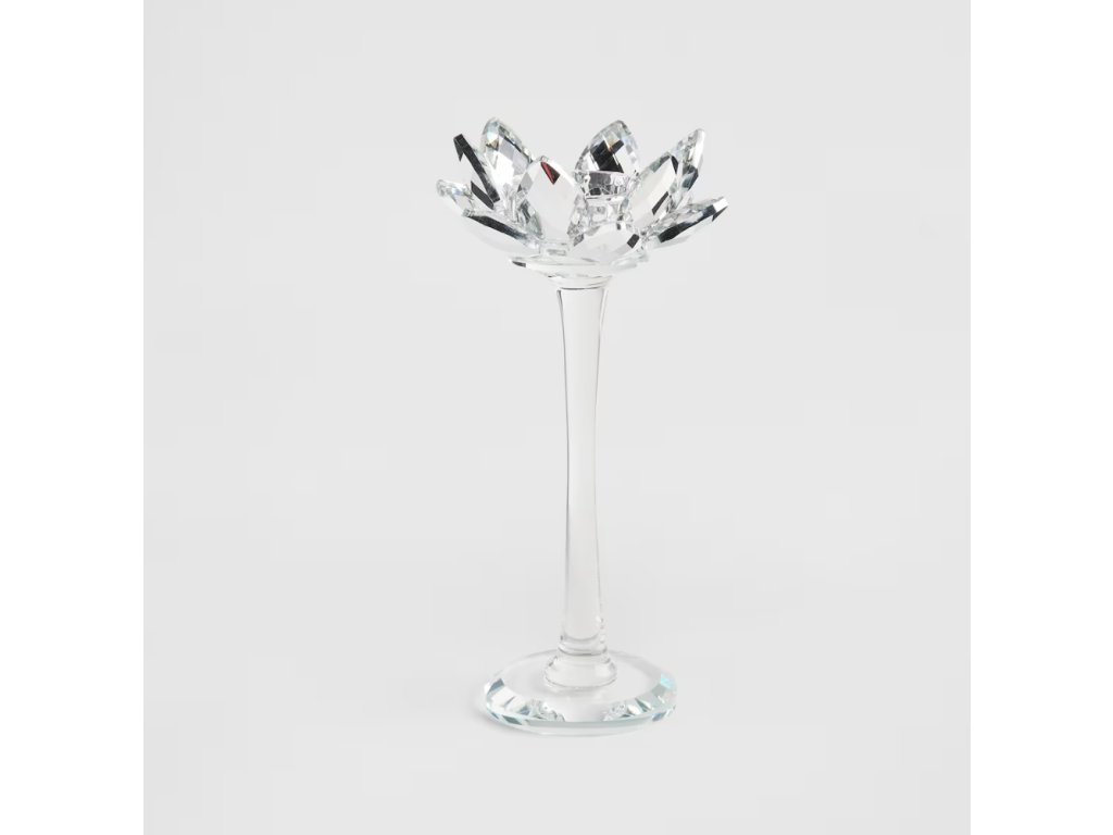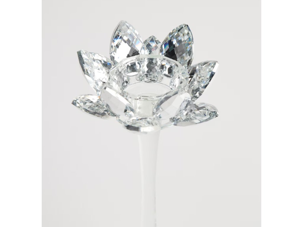 Premyslená forma inšpirovaná kvetom lotosu a fazetovanými lupeňmi zaisťuje svietniku Cristal shine stand neopakovateľný vzhľad. Transparentné sklo s lesklým vyhotovením sa výborne hodí do elegantných, glamour, moderných, a dokonca aj minimalistických priestorov. Predstavuje dokonalý akcent na stole počas rodinných osláv, romantických večerí alebo ako darček na špeciálne príležitosti.