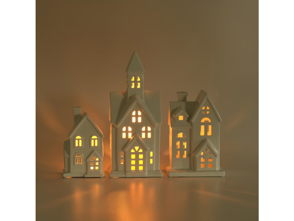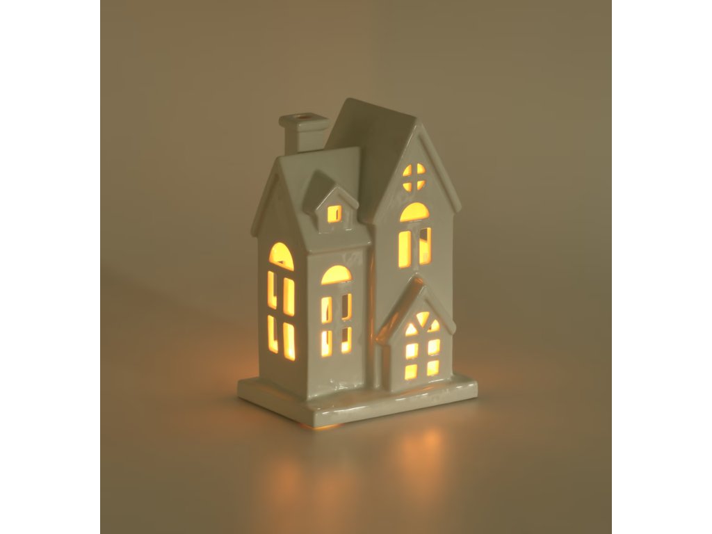 Produkt je určený na používanie so sviečkami typu tealight. To uľahčuje rýchle a bezpečné vkladanie sviečky a keramický podstavec zaisťuje stabilnosť dekorácie na každom povrchu. Súprava obsahuje jednotlivý keramický domček s rozmermi 12 cm šírky, 17 cm dĺžky a 25 cm výšky.