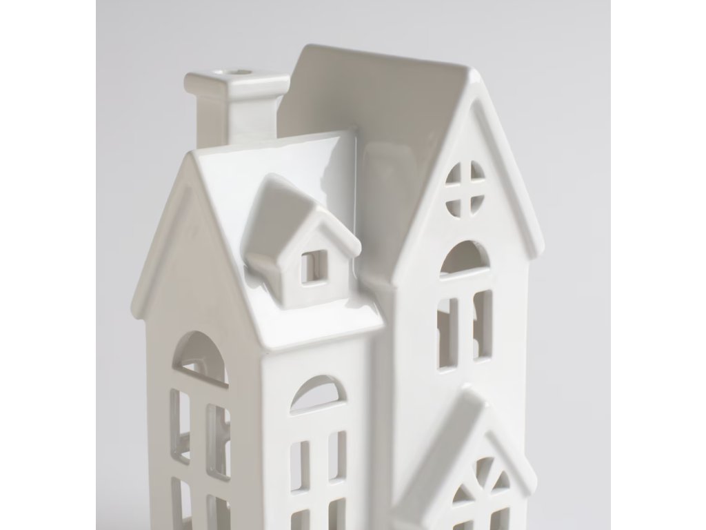 Biely, lesklý svietnik v tvare tradičného domčeka s mnohými starostlivými výrezmi imituje okná a dvere, cez ktoré preniká teplé svetlo sviečky. Tento subtílny, tradičný dizajn sa dokonale hodí do škandinávskych a minimalistických interiérov, a motív domčeka zabezpečuje, že vyzerá skvele po celý rok a obzvlášť počas zimných a sviatočných aranžmánov. Je to tiež vynikajúci nápad na darček pre milovníkov štýlových dekorácií.