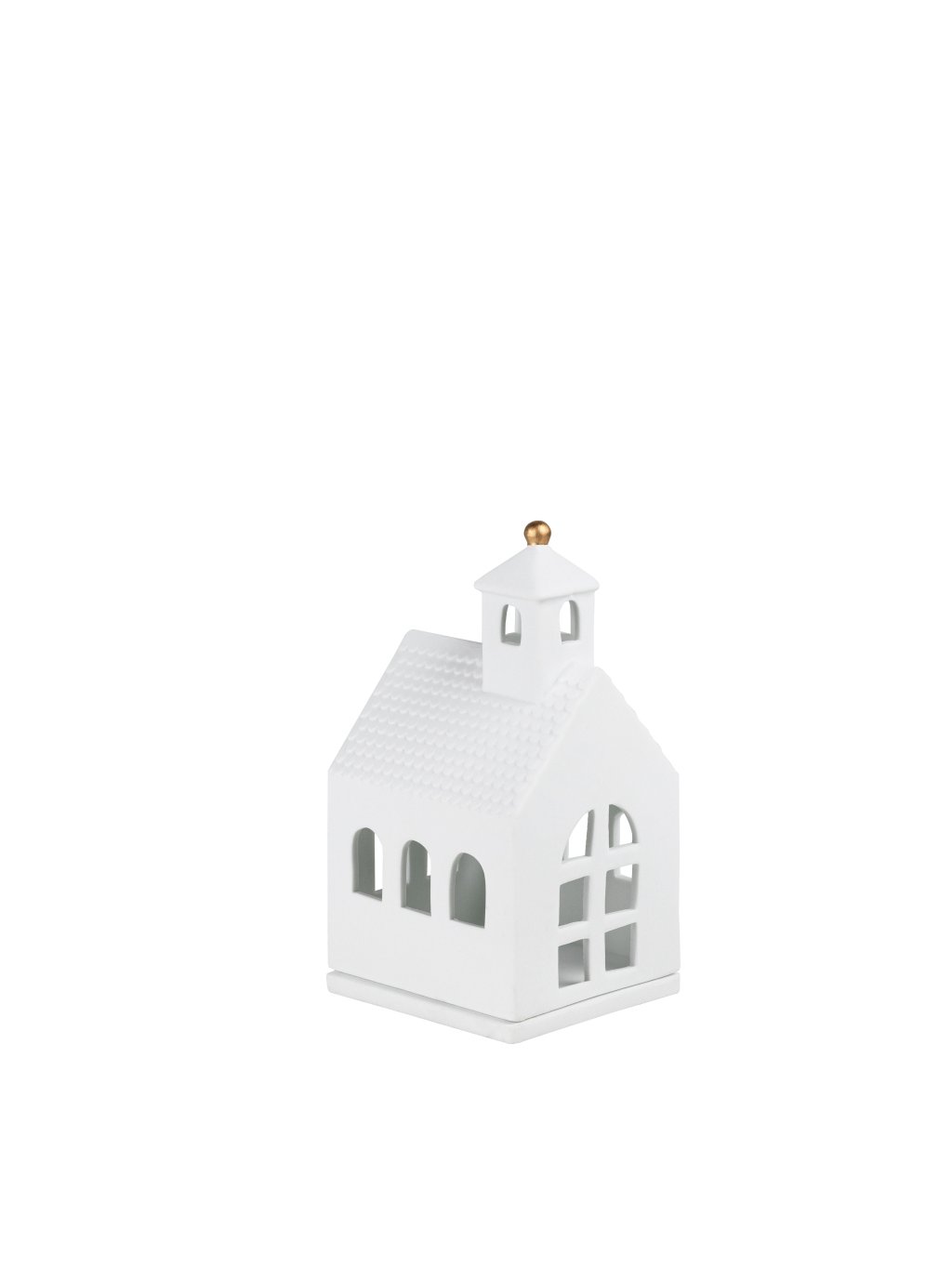 Malý kúsok pokoja pre váš domov. Táto biela keramická kaplnka so zlatým detailom premení každý večer na výnimočný okamih. Stačí vložiť čajovú sviečku a nechať svetlo prúdiť cez klenuté okná, ktoré vytvoria na stene čarovnú hru tieňov."