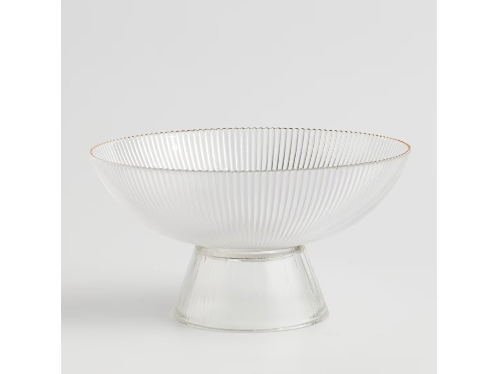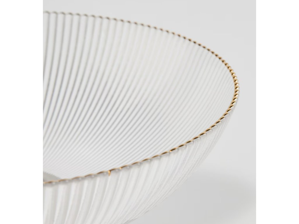 Sklenená etažérka so zlatým okrajom je elegantný doplnok, ktorý obohatí každú oslavu či rodinné stretnutie. Jej priehľadná forma podčiarkuje estetiku servírovaných pokrmov a zlatý okraj dodáva luxusný akcent, vďaka čomu celok získa výnimočný charakter. Ideálna na podávanie ovocia, koláčov či pochutín, spája funkčnosť s vycibreným dizajnom. Vďaka pevnému spracovaniu je odolná a ľahko sa udržiava, čo z nej robí vynikajúcu voľbu pre rôzne príležitosti.