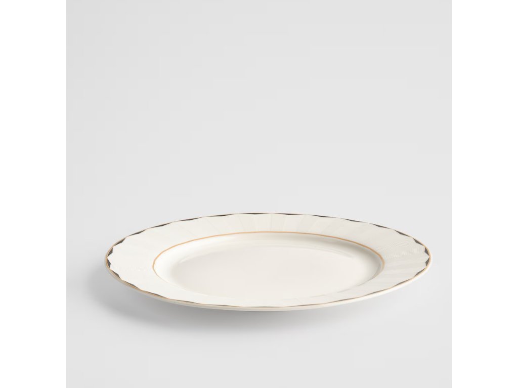 Jemný krémovobiely odtieň, decentné geometrické reliéfne zdobenie na okrajoch a elegantná povrchová úprava zlatou linkou sú esenciou nadčasového štýlu. Obedný tanier Olea sa dokonale hodí do klasických aj moderných interiérov, pričom podčiarkuje výnimočnosť každého stretnutia pri stole. Je to ideálna voľba na bežné obedy, rovnako ako na elegantné večere. Vďaka svojmu efektnému vzhľadu sa hodí aj ako štýlový darček na kolaudáciu alebo svadbu.