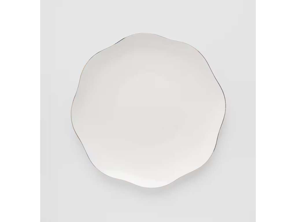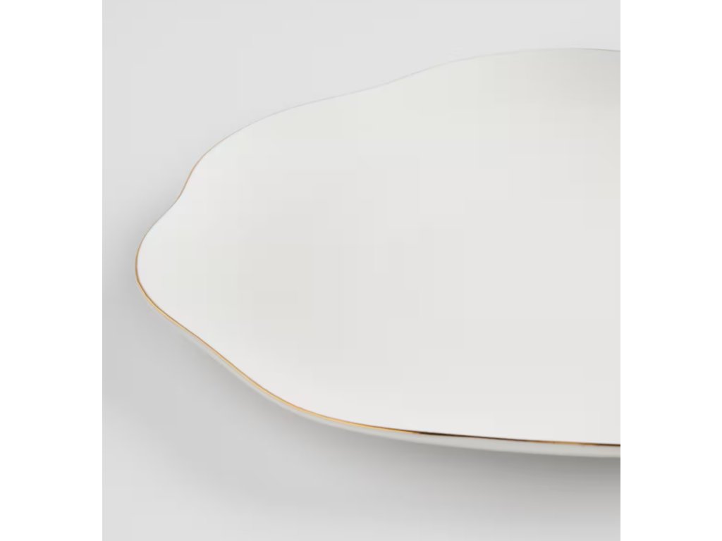Tento elegantný biely tanier z porcelánu Fine Bone China je nadčasovým kúskom, ktorý dodá vášmu stolovaniu nádych sofistikovanosti. S priemerom 28 cm a výškou 3 cm je ideálny na servírovanie hlavných jedál, dezertov alebo ako štýlový podnos. Jeho jemne zvlnený okraj so zlatým lemovaním podčiarkuje jeho luxusný vzhľad a robí z neho univerzálny doplnok do klasického aj moderného interiéru.