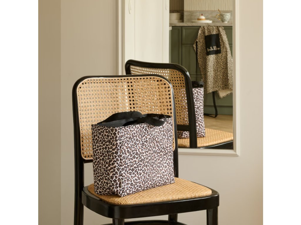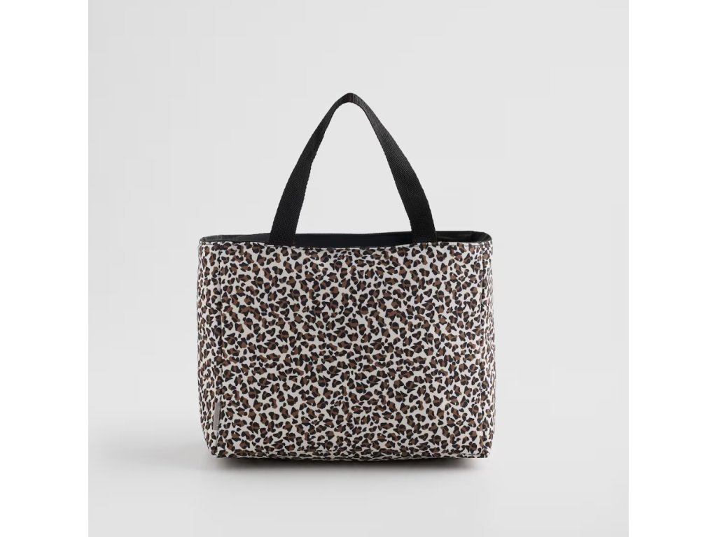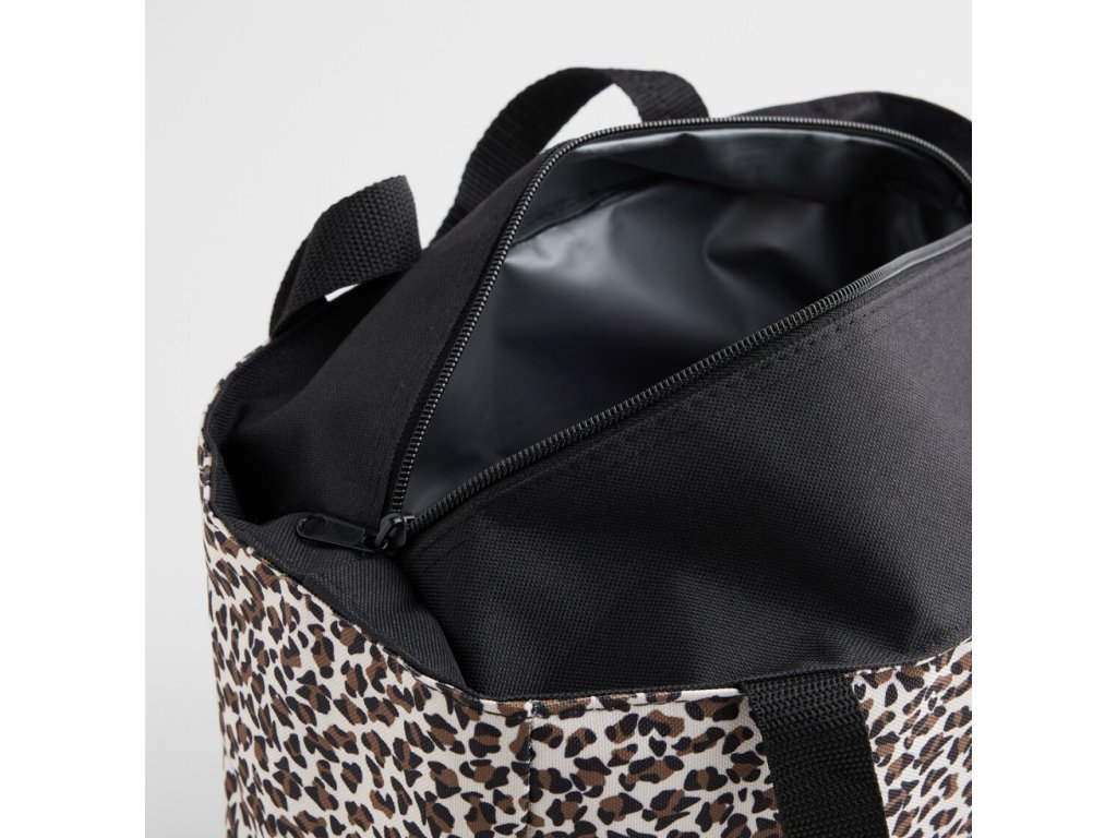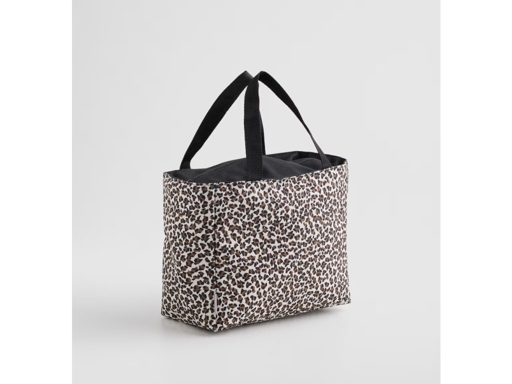 Obedová taška v béžovom odtieni s moderným leopardím vzorom je štýlový a praktický doplnok na každý deň. Rozmery poskytujú dostatok priestoru na občerstvenie, nápoje a obľúbené jedlá, pričom taška zostáva kompaktná a pohodlná na nosenie.