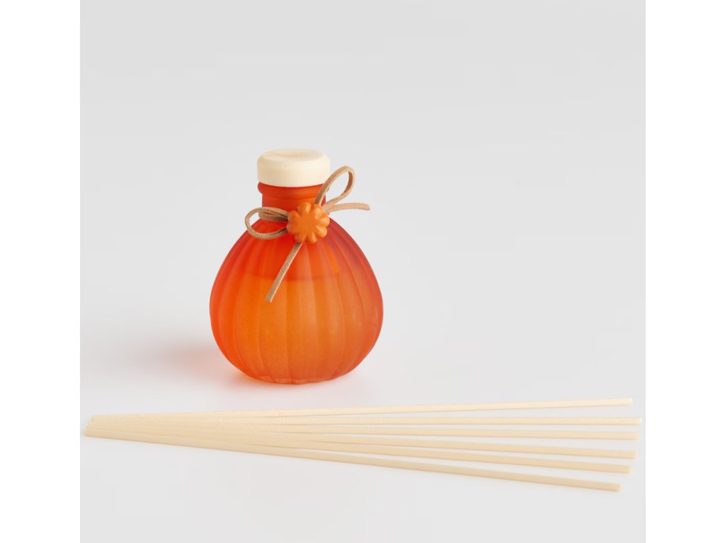 Osviežovač vzduchu zo skla v oranžovej farbe, v tvare tekvice, s objemom 100 ml, je jedinečný dekoračný akcent, ktorý vnesie do miestnosti sviežu a príjemnú vôňu. Je ideálny na jesennú sezónu a spája v sebe estetiku s funkčnosťou.
