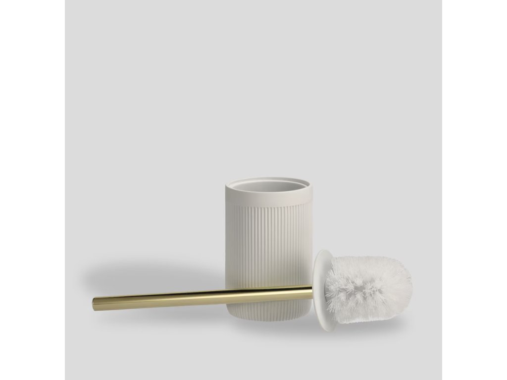 Toaletná kefa zo živicovej hmoty v bielej farbe je elegantný a funkčný doplnok do každej kúpeľne. Jej minimalistický dizajn v kombinácii s trvácnym materiálom zaisťuje dlhodobé používanie a klasický odtieň sa hodí k rôznym štýlom interiérov, ktorým zároveň dodáva estetiku.