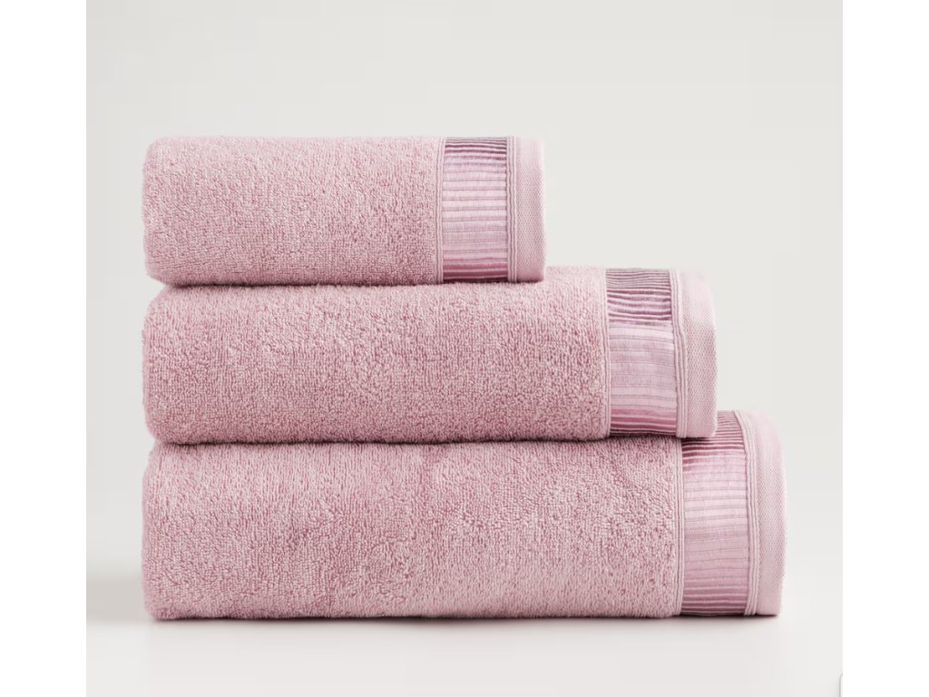 Uterák z bavlny s prídavkom viskózy v jemnom ružovom odtieni. Jeho rozmery zaručujú vynikajúcu savosť a komfort pri používaní, a kombinácia bavlny a viskózy ho robí mimoriadne mäkkým a príjemným na dotyk. Ideálny do kúpeľne, kde vnesie jemnú eleganciu a sviežosť.