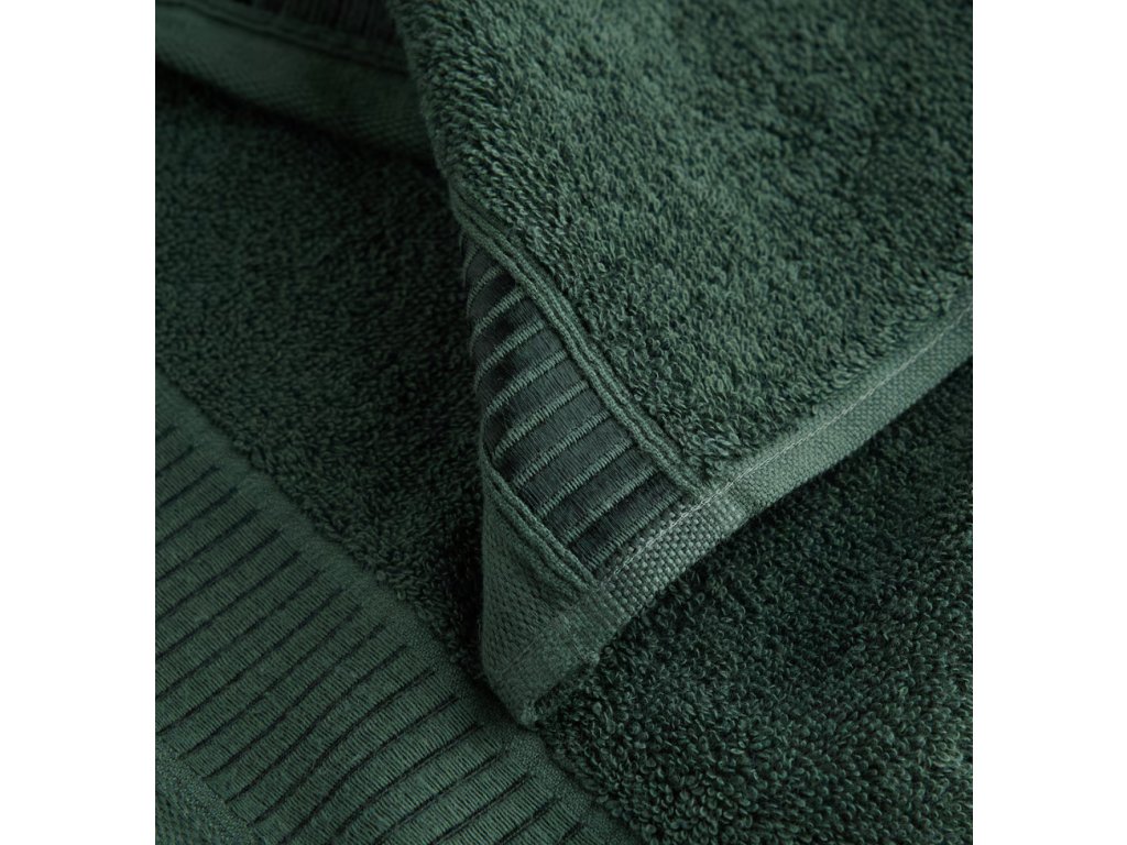 Uterák z bavlny s prídavkom viskózy v sýtej, tmavozelenej farbe. Jeho rozmery zabezpečujú pohodlie a vysokú savosť, a kombinácia bavlny a viskózy robí uterák výnimočne mäkkým a príjemným na dotyk. Ideálny na každodenné použitie v kúpeľni, dodáva jej eleganciu a sviežosť.