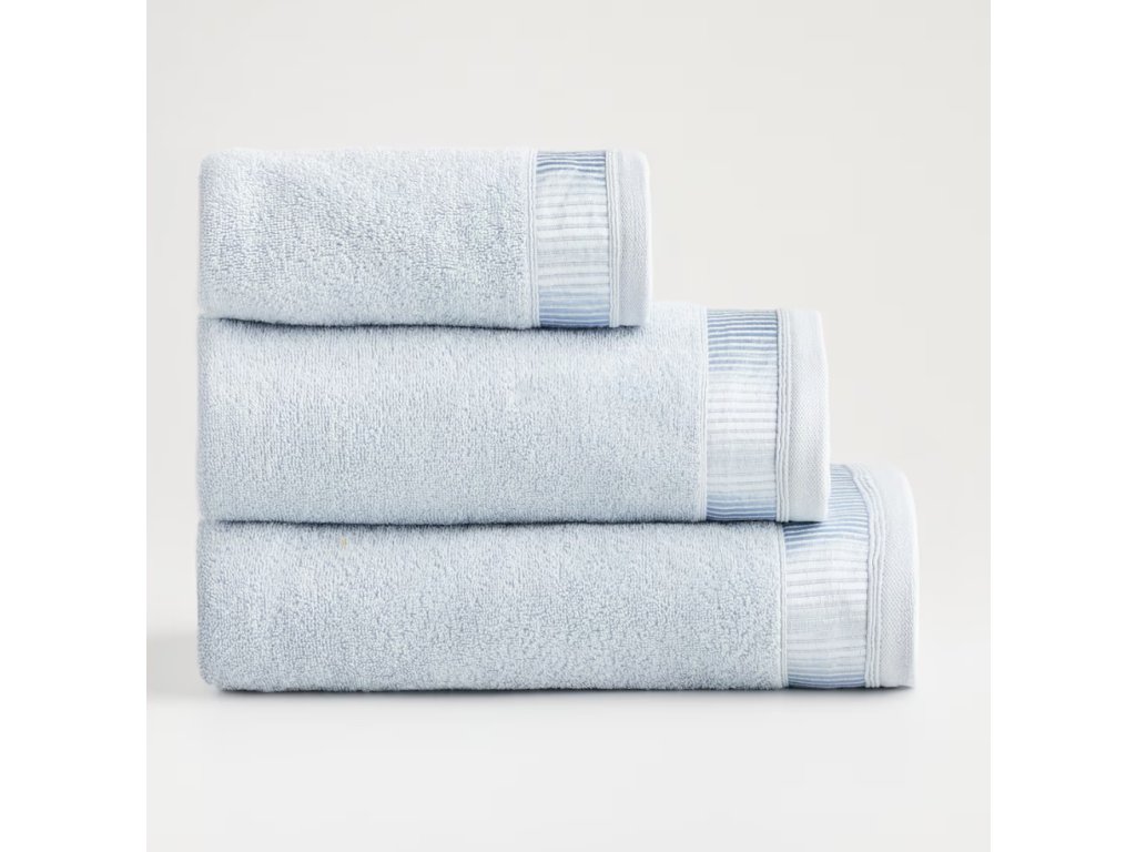 Uterák zo zmesi bavlny a viskózy v svetlomodrej farbe. Mäkký, savý a príjemný na dotyk. Ideálny na každodenné použitie v kúpeľni. Zabezpečuje komfort a elegantný vzhľad.