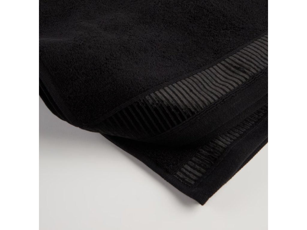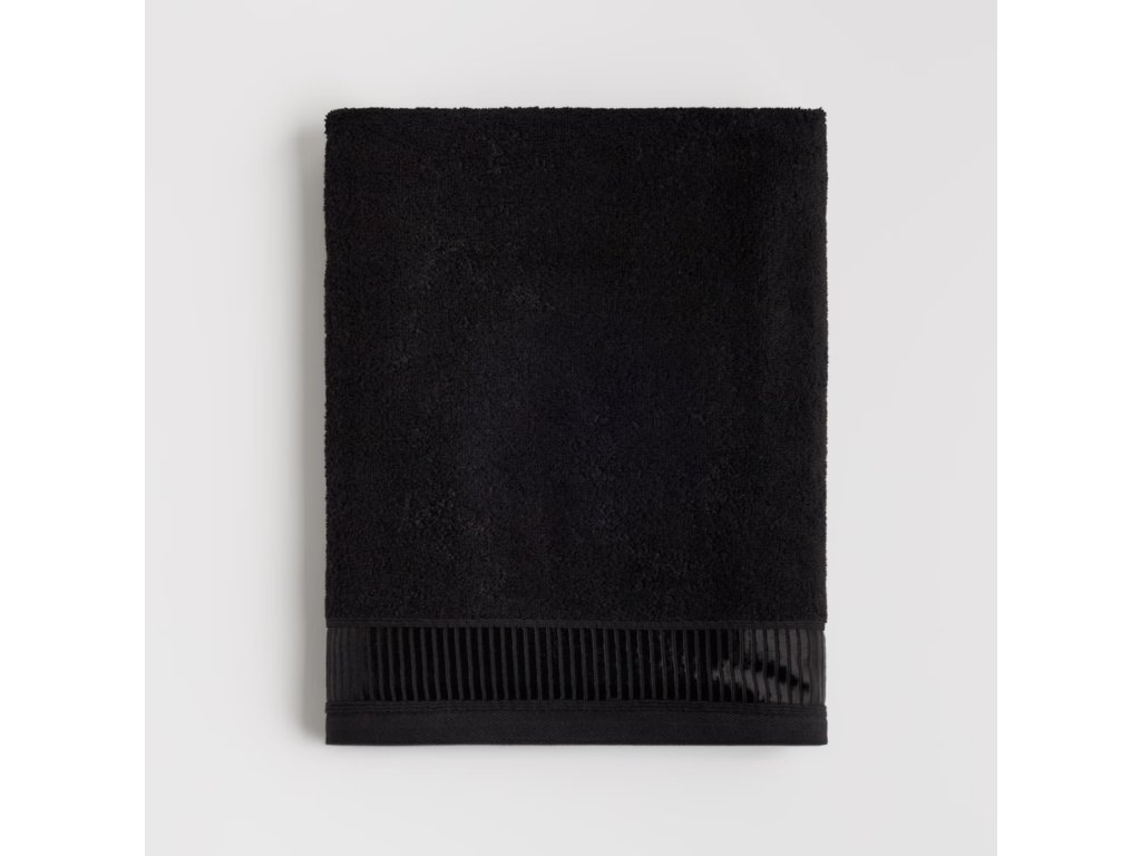 Uterák z bavlny s prídavkom viskózy a s gramážou 450 g/m² spája mäkkosť a výnimočnú savosť. Čierne prevedenie mu dodáva elegantný a moderný vzhľad, ktorý sa dokonale hodí do každej kúpeľne. Rozmer 70 cm x 130 cm zaručuje pohodlie a funkčnosť, vďaka čomu sa ideálne hodí ako kúpeľňový uterák.