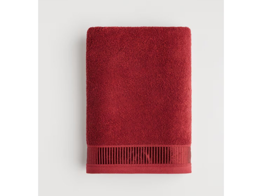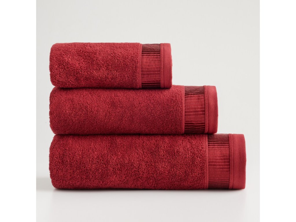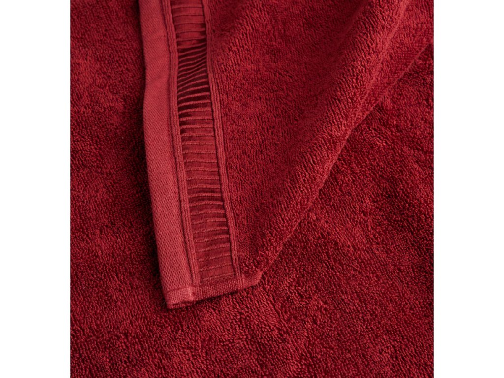 Uterák z bavlny s prídavkom viskózy v intenzívnej tmavočervenej farbe. Jeho rozmery zaručujú vynikajúcu savosť a komfort, a spojenie materiálov robí uterák výnimočne mäkkým a príjemným na dotyk. Ideálny do kúpeľne, vnesie do interiéru elegantný a teplý akcent.