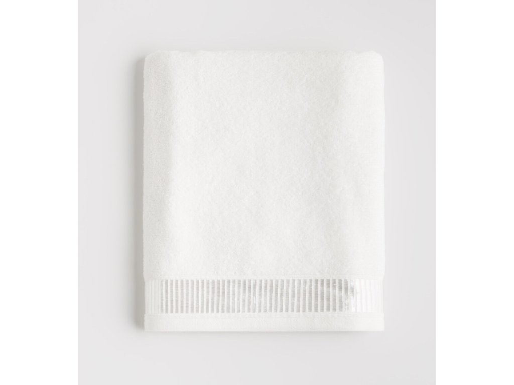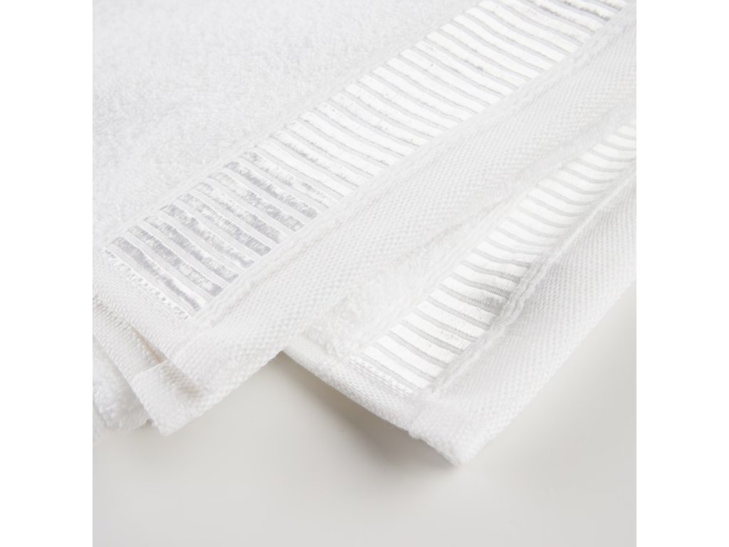 Mäkký a savý uterák z bavlny v klasickej bielej farbe. Poskytuje pohodlie, mäkkosť a vynikajúcu savosť vlhkosti, ideálny na každodenné použitie v každej kúpeľni.
