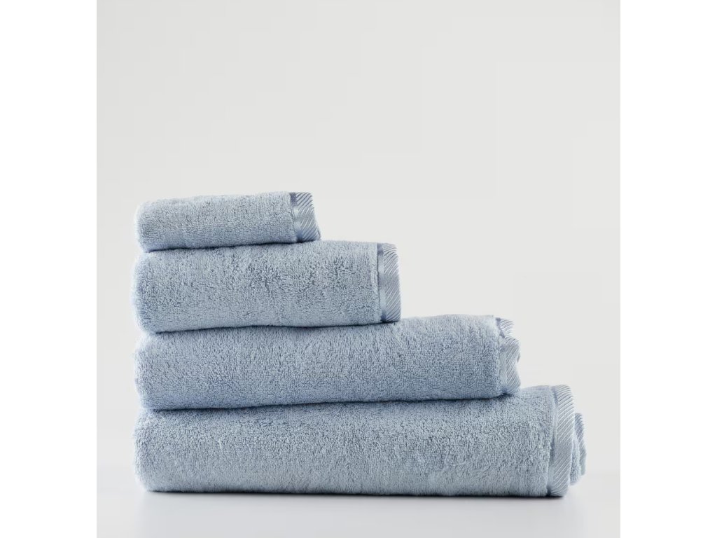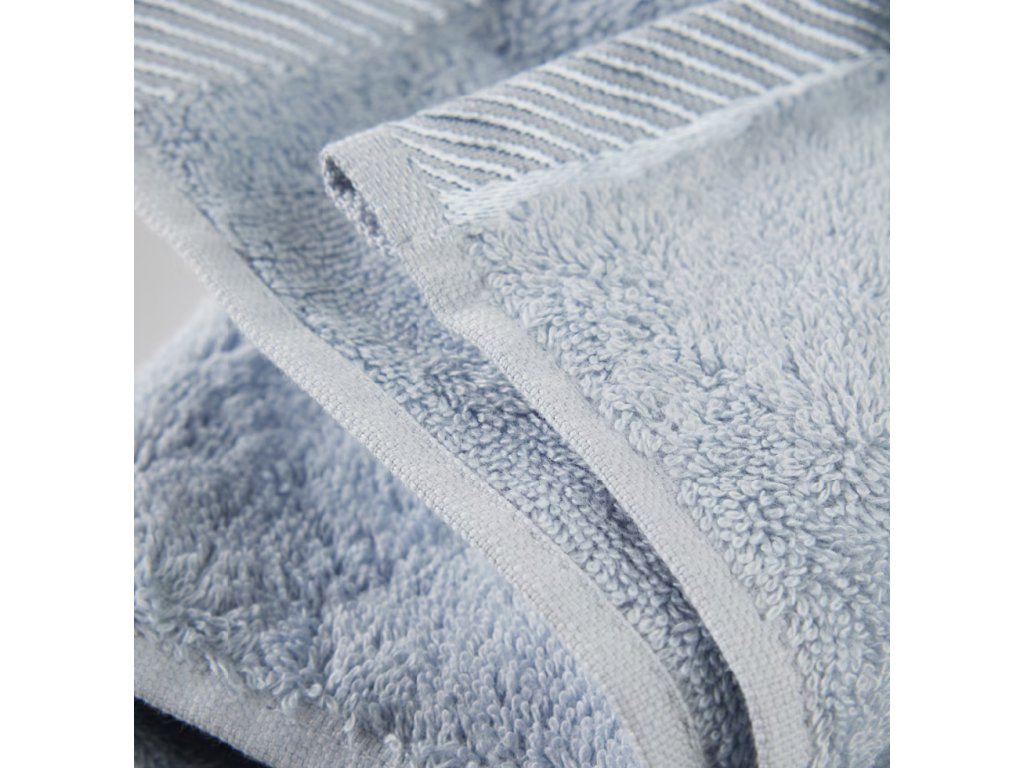 Svetlomodrý odtieň uteráka, ktorý sa spája s blaženým pokojom letnej oblohy, sa dokonale hodí k minimalistickým a klasickým kúpeľniam, dodávajúc im sviežosť.