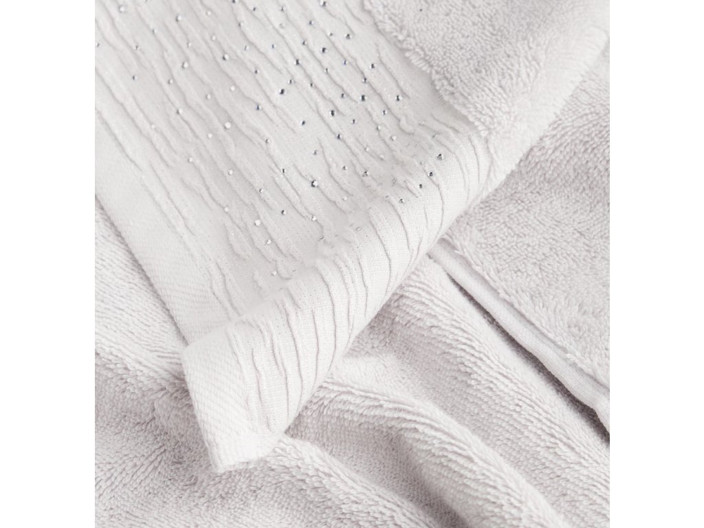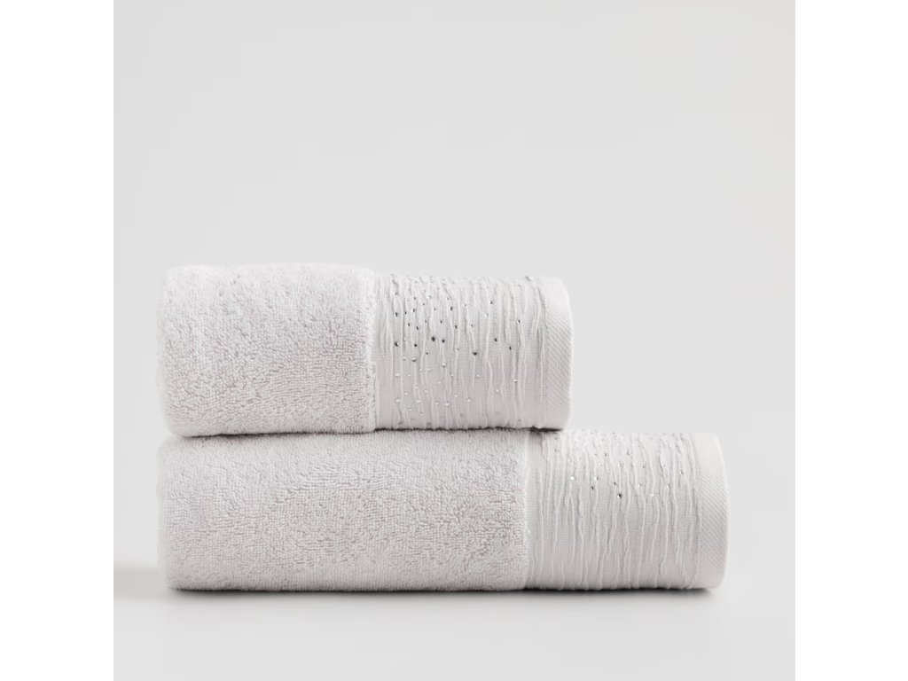 Uterák Cristales zaujme svetlosivou farbou, ktorá vnesie do vašej kúpeľne pokoj a harmóniu. Decentný vzor z metalizovaných vlákien mu dodáva eleganciu a šik. Ideálne zapadne do moderných, minimalistických interiérov, ako aj do tých zariadených v štýle glamour. Uterák Cristales je taktiež vynikajúci nápad na darček pre blízku osobu.