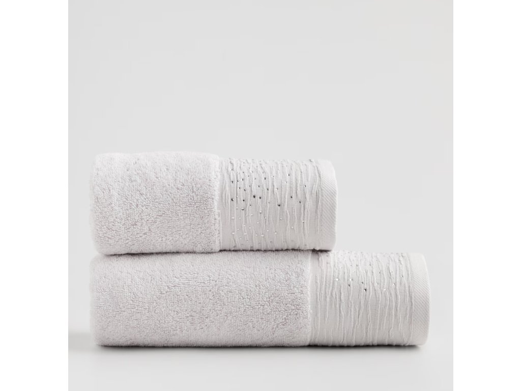 Uterák Cristales uchvacuje minimalistickým dizajnom v svetlosivej farbe, ktorá sa ideálne hodí do každej kúpeľne. Jemná, metalizovaná dekorácia mu dodáva decentný lesk a eleganciu. Uterák dokonale doplní interiéry v modernom, minimalistickom, ako aj glamour štýle. Je to tiež vynikajúci nápad na darček pre blízku osobu.