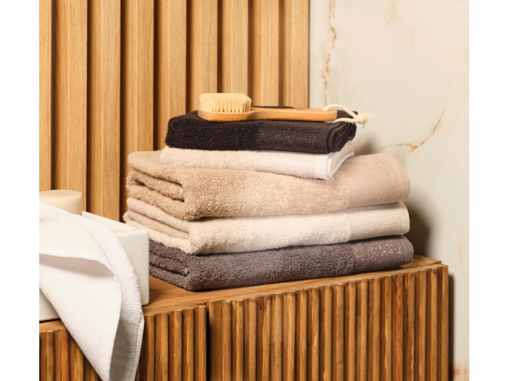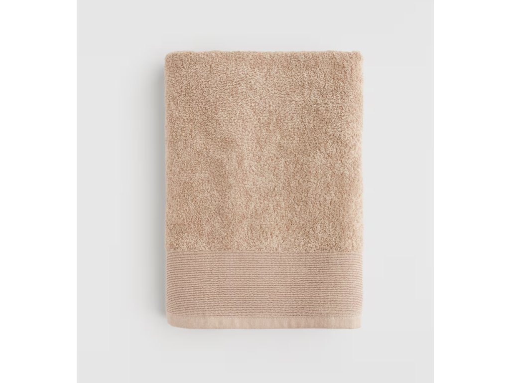 Kúpeľňový uterák v béžovej farbe s rozmermi 70 x 130 cm je praktickým a štýlovým prvkom do každej kúpeľne. Je vyrobený zo 100 % bavlny s gramážou 450 g/m², čo zaručuje príjemnú mäkkosť, dobrú savosť a rýchle schnutie. Jeho stredná veľkosť sa osvedčí doma, ako aj v telocvični alebo pri bazéne. Jemný svetlobéžový odtieň dodá interiéru ľahkosť a eleganciu, pričom dokonale ladí s rôznymi štýlmi interiérového dizajnu. Prírodné vlákna sú šetrné k pokožke a odolné voči častému praniu.