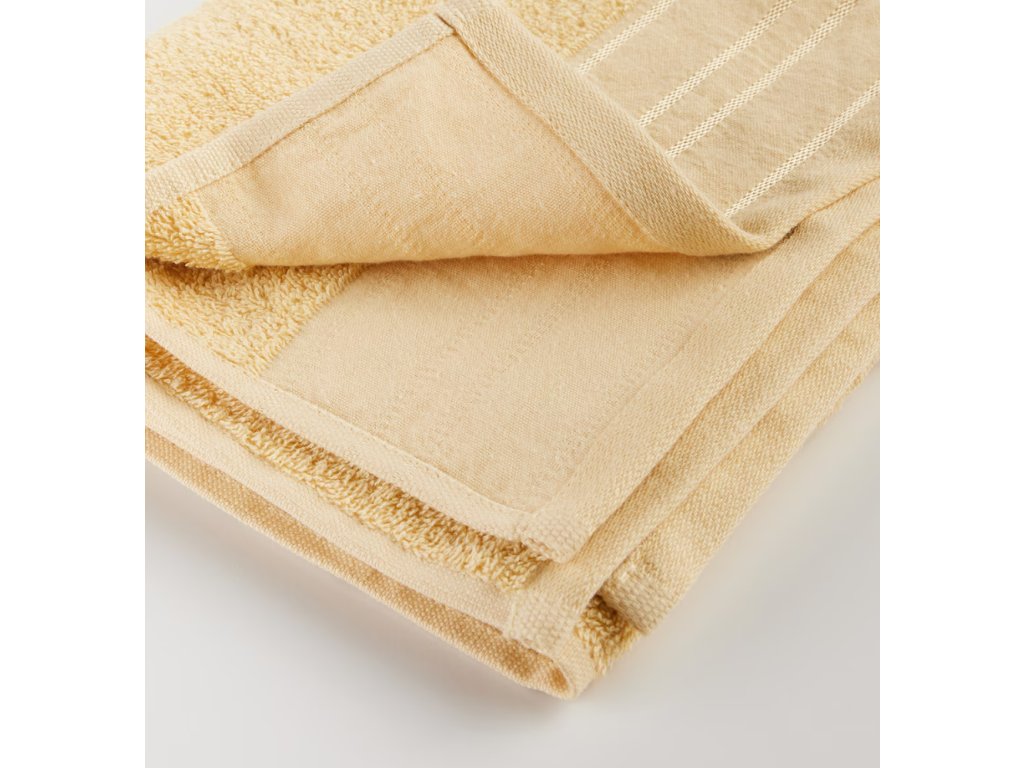 Uterák z bavlny a viskózy v žltej farbe je výnimočne savý a mäkký produkt, ideálny na každodenné použitie. Kombinácia materiálov zaisťuje vynikajúcu absorpciu vlhkosti, ako aj príjemný pocit na dotyk. Odtieň dodáva uteráku elegantný a nadčasový vzhľad, a jeho veľkosť zabezpečuje, že je pohodlný na používanie tak v kúpeľni, ako aj počas kúpania alebo relaxu.