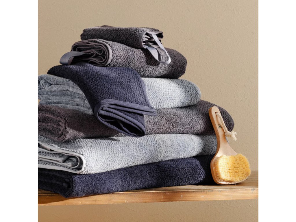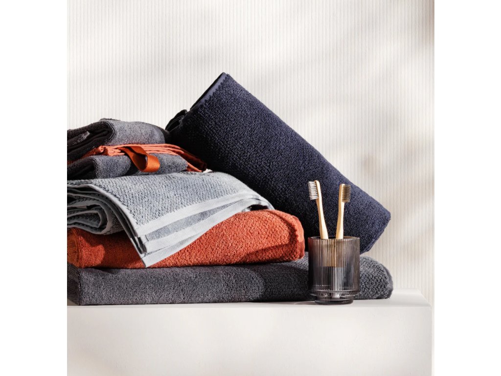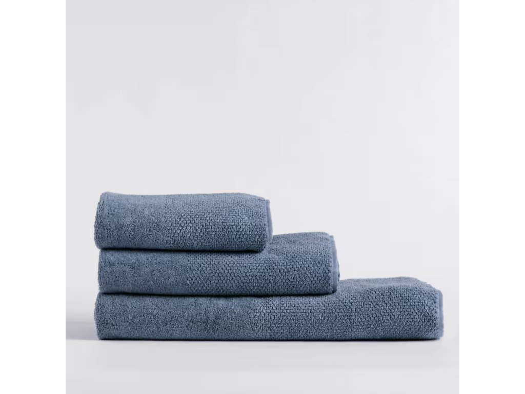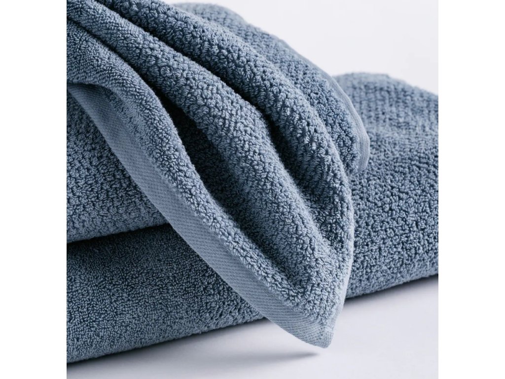 Modrý uterák Strippo je symbolom elegancie a funkčnosti v každej kúpeľni. Je vyrobený zo $100\%$ vysokokvalitnej bavlny s gramážou 550 g/m², zaisťuje dokonalú absorpciu vlhkosti a mäkkosť na dotyk. Jeho jemné vyhotovenie jednoduchého okraja s jednofarebným žakárovým vzorom mu dodáva výnimočný charakter a štýl.