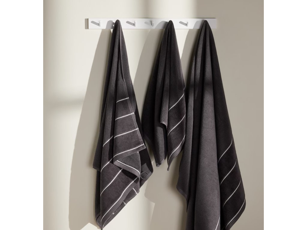 Už od prvého dotyku vás uterák Velly 50x90 cm zahalí príjemnou mäkkosťou a zabezpečí, že každý návrat do domácej kúpeľne sa stane chvíľou relaxu. Decentne kontrastné biele línie na pozadí tmavosivej farby pripomínajú stopy morských vĺn na piesku – detaily, ktoré z každodenných rituálov robia skutočné malé ceremónie oddychu. Výberom Velly siahate po produkte inšpirovanom pokojom moderných interiérov a harmóniou jednoduchých foriem, ktoré sa ľahko hodia do rôznych zariadení, od minimalistických po klasickejšie. Viete si predstaviť lepší spôsob, ako vniesť atmosféru upokojenia do svojej kúpeľne?