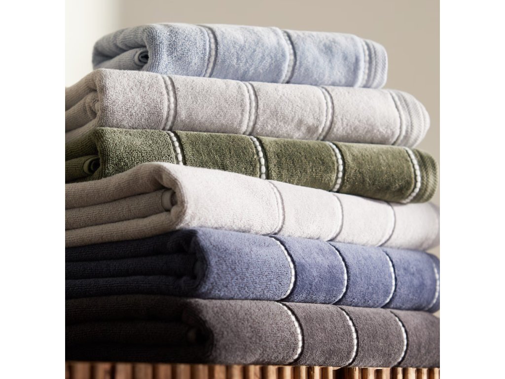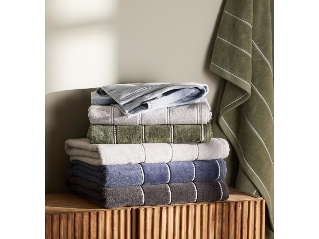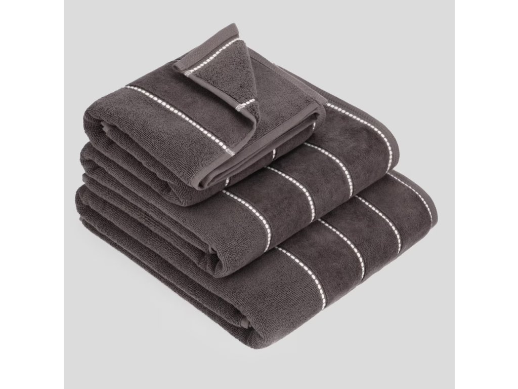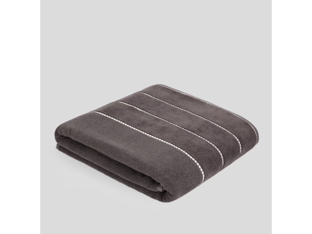 Tónovaná, tmavosivá farba uteráka je prelomená tromi rovnobežnými bielymi líniami, ktoré tvoria vypuklé, dekoratívne pásy inšpirované pokojom prírody. Precízne obšitie a decentná froté štruktúra dopĺňajú estetiku produktu – je to uterák, ktorý sa hodí do kúpeľňovej súpravy textílií, ako aj ako jednotlivý, pútavý akcent v kúpeľni. Výnimočnosť detailov a univerzálnosť štýlu robia z Velly tiež vynikajúci nápad na darček.