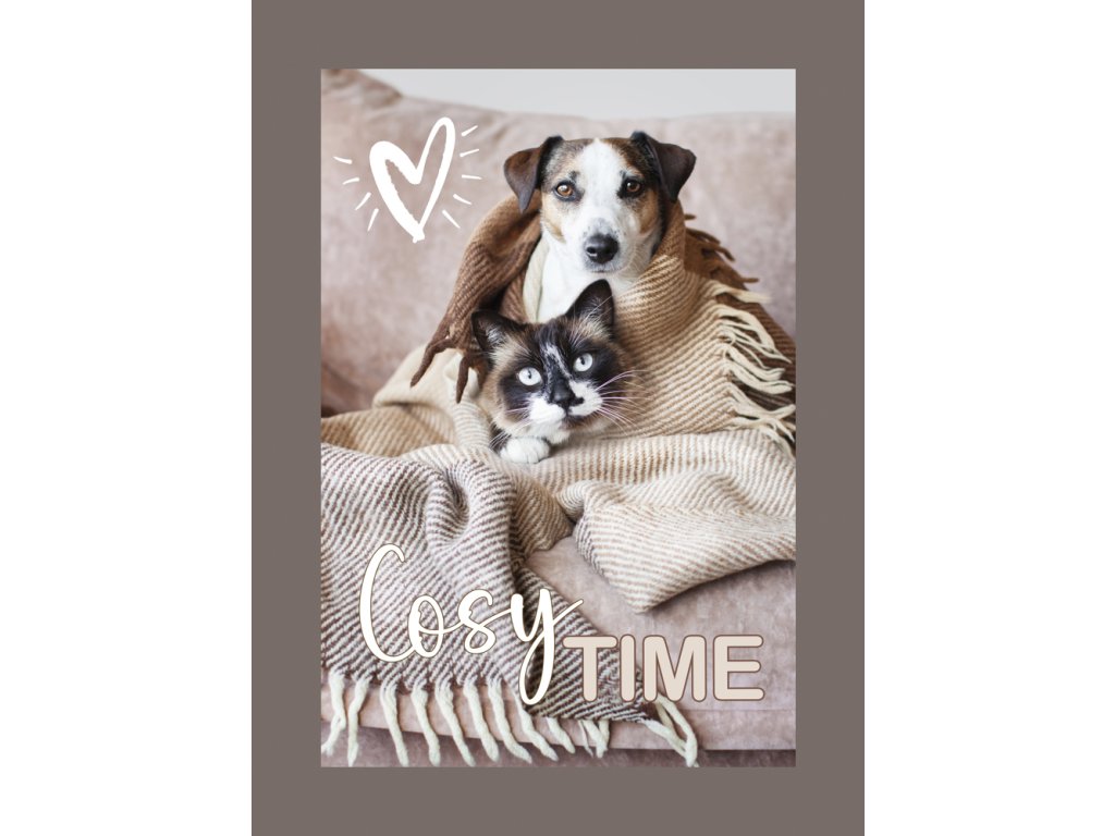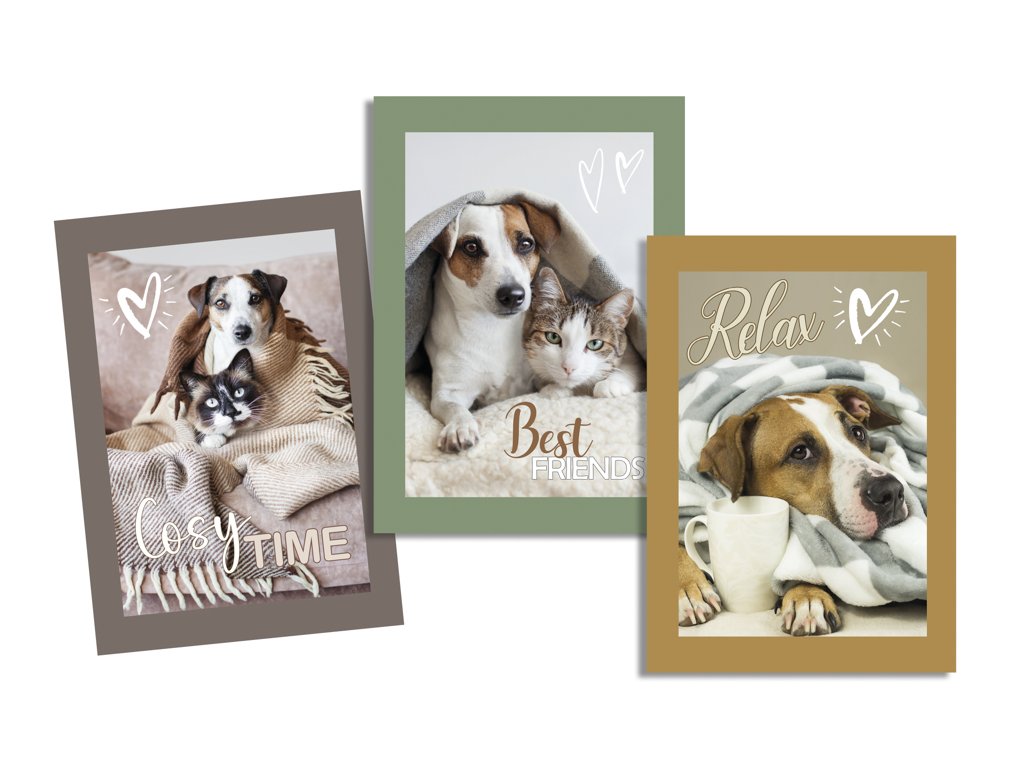 Dekoračné kuchynské utierky z tejto kolekcie sú skvelým a praktickým doplnkom, ktorý vnesie do vašej kuchyne hrejivú atmosféru, vhodnú pre milovníkov zvierat. Jeden typ utierky zobrazuje roztomilú fotku psa a mačky schúlených pod dekou s nápisom "Cosy TIME", ohraničenú hnedým okrajom. Ďalší variant zachytáva srdce hrejivú fotku psa a mačky, nad ktorými je nápis "Best FRIENDS", s okrajom v tlmenom zelenom odtieni. Tretí variant má motív oddychujúceho psa pod dekou, s hrnčekom vedľa a nápisom "Relax" na pozadí, to všetko orámované teplým, žltým okrajom. Všetky utierky sú vyrobené z mäkkého, savého materiálu, čo z nich robí nielen krásny dekoračný prvok, ale aj praktického pomocníka do každej domácnosti.