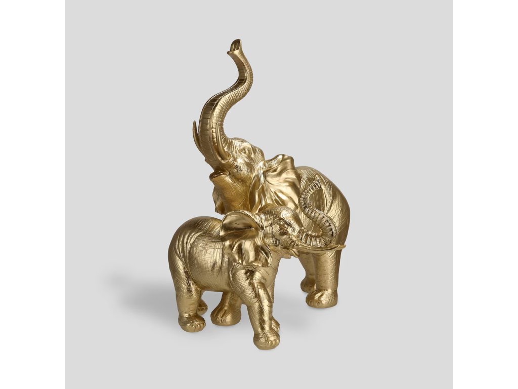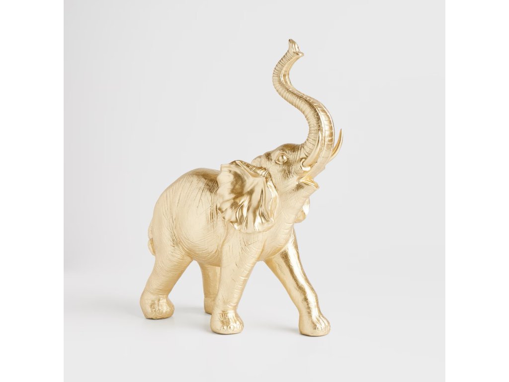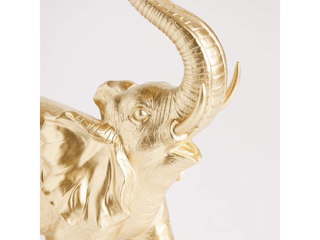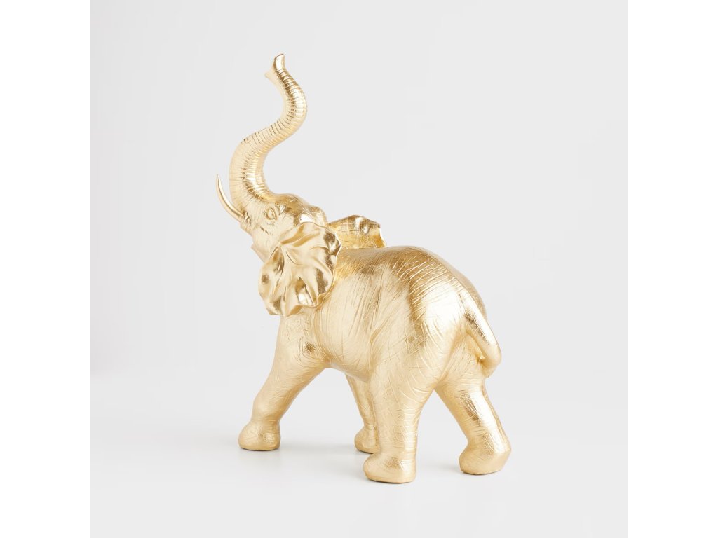 Elegantná dekoračná figúrka v tvare slona, vyrobená zo živicovej hmoty v zlatom prevedení. Symbolizuje silu a šťastie. Táto výnimočná ozdoba vnesie luxusný akcent do každého interiéru. Ideálna do obývačky alebo kancelárie, dodá priestoru eleganciu a výnimočný charakter.