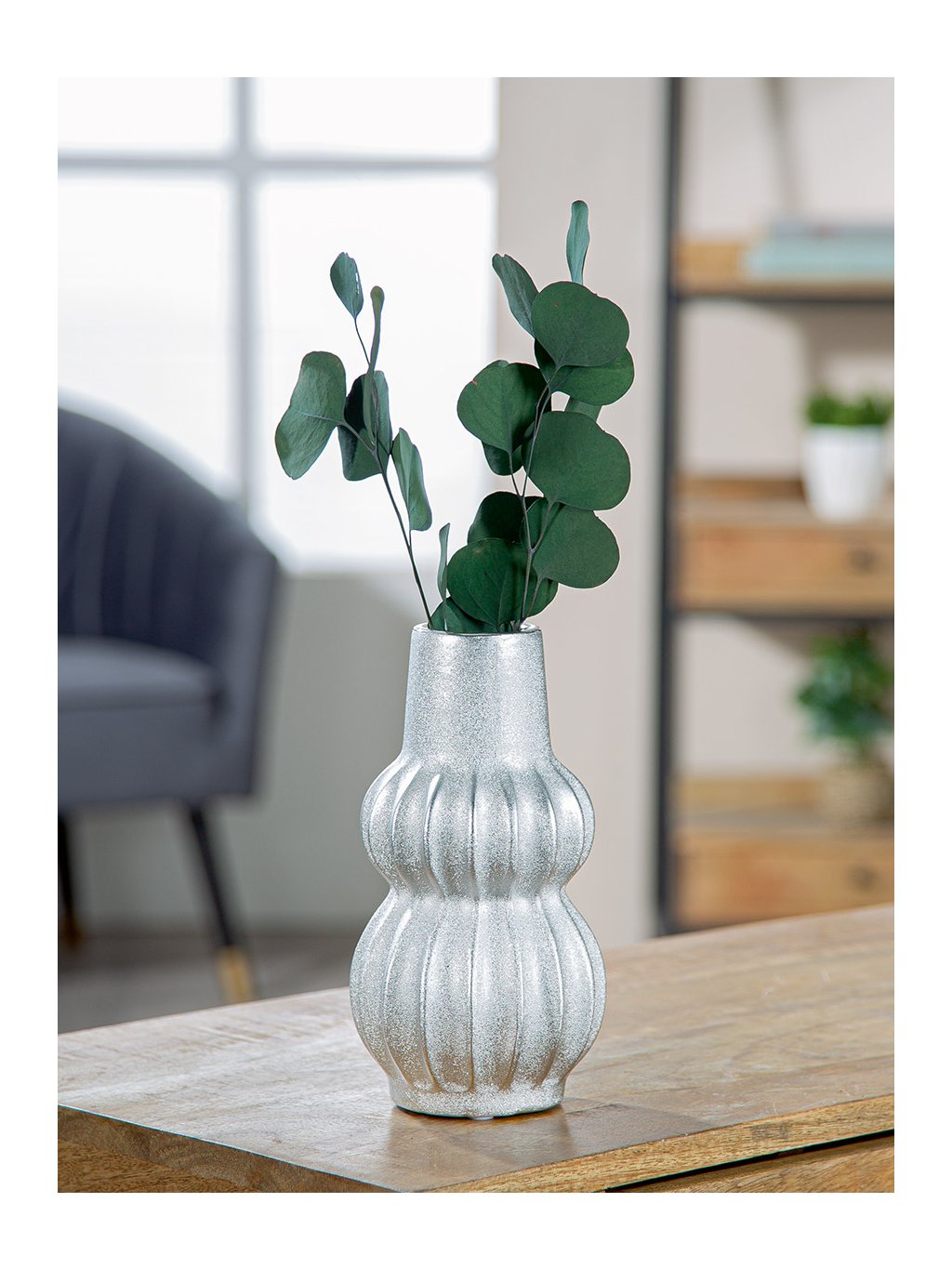 Keramická váza Argento v elegantnom striebornom prevedení zaujme svojím organickým, jemne zvlneným tvarom. S rozmermi 22 x 11,5 cm a trblietavou textúrou je ideálnym moderným doplnkom, ktorý rozžiari každý jedálenský stôl alebo komodu.